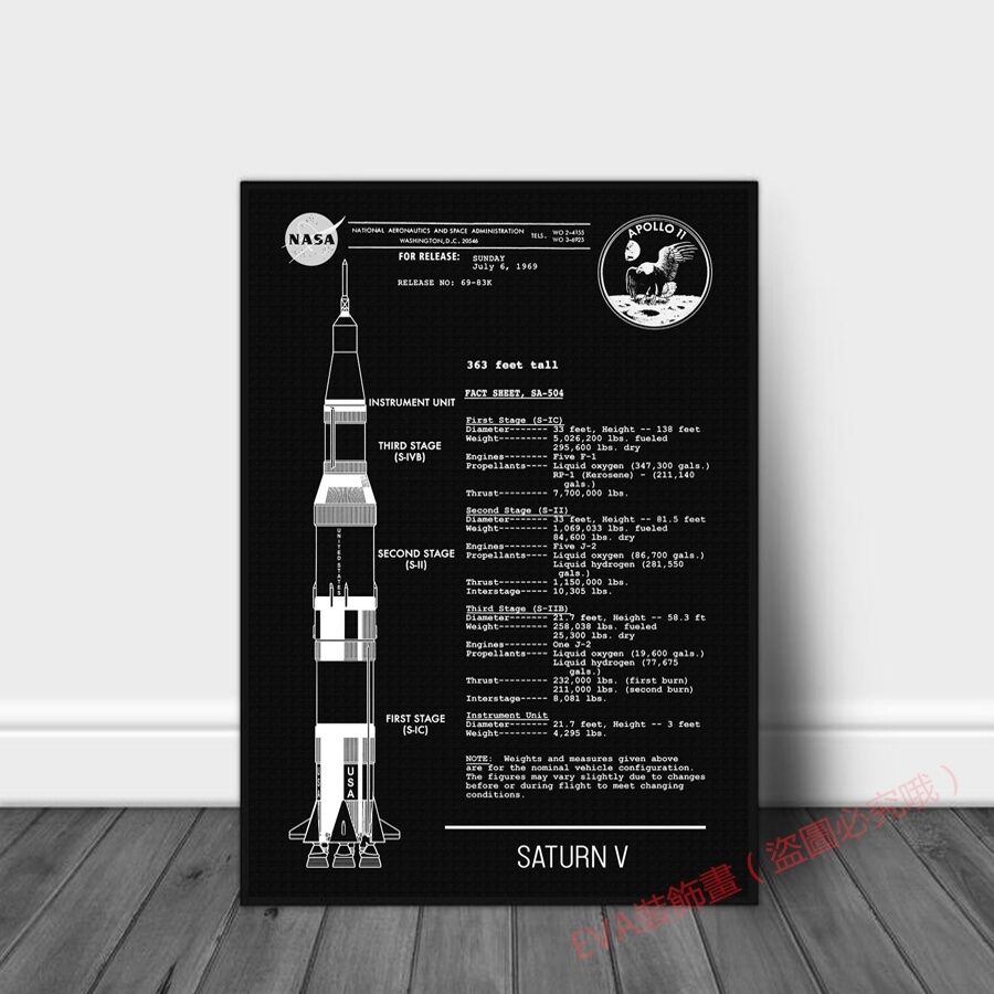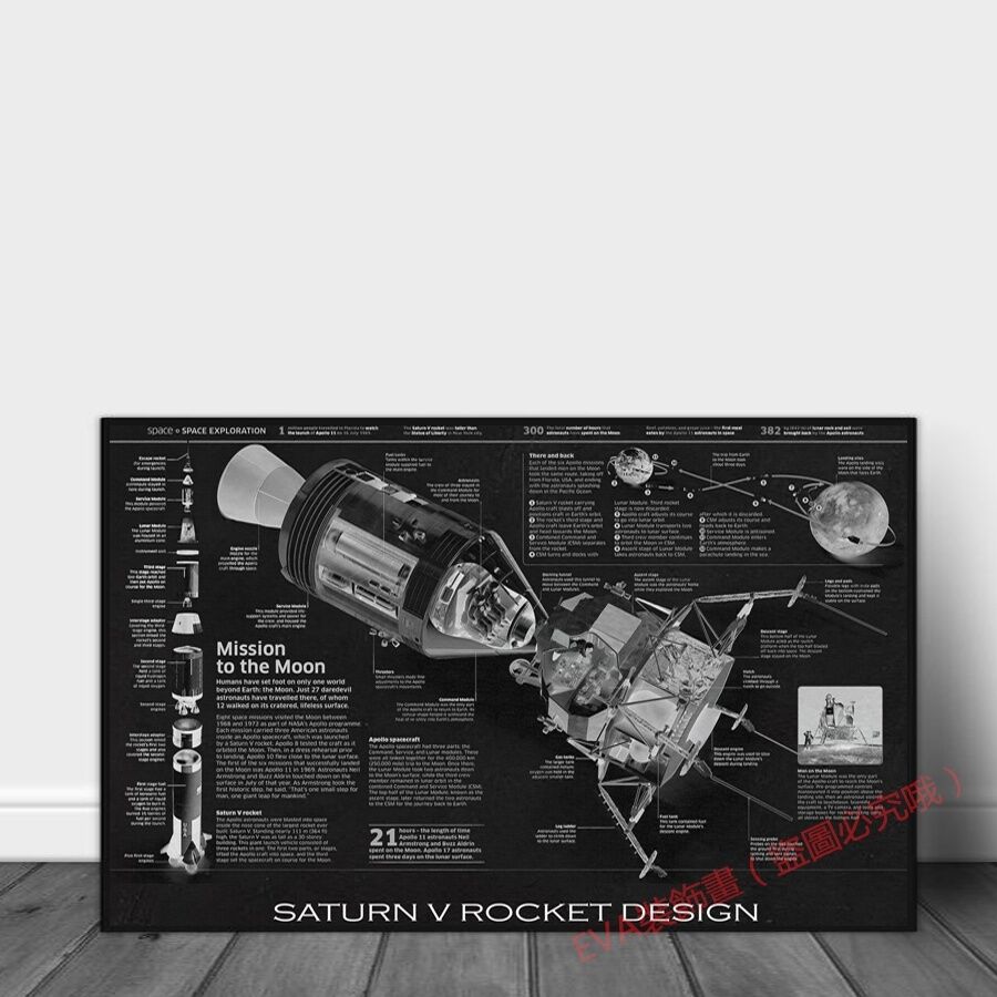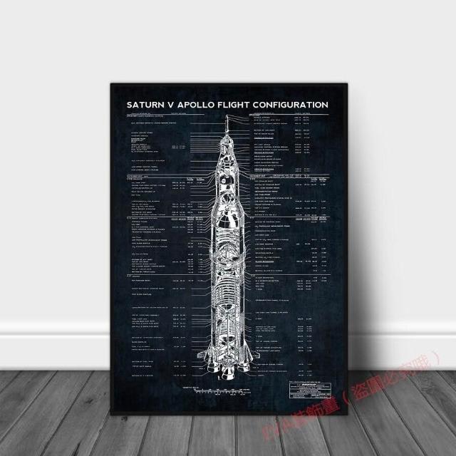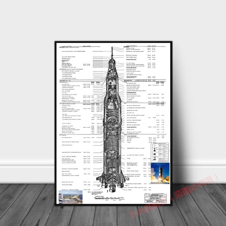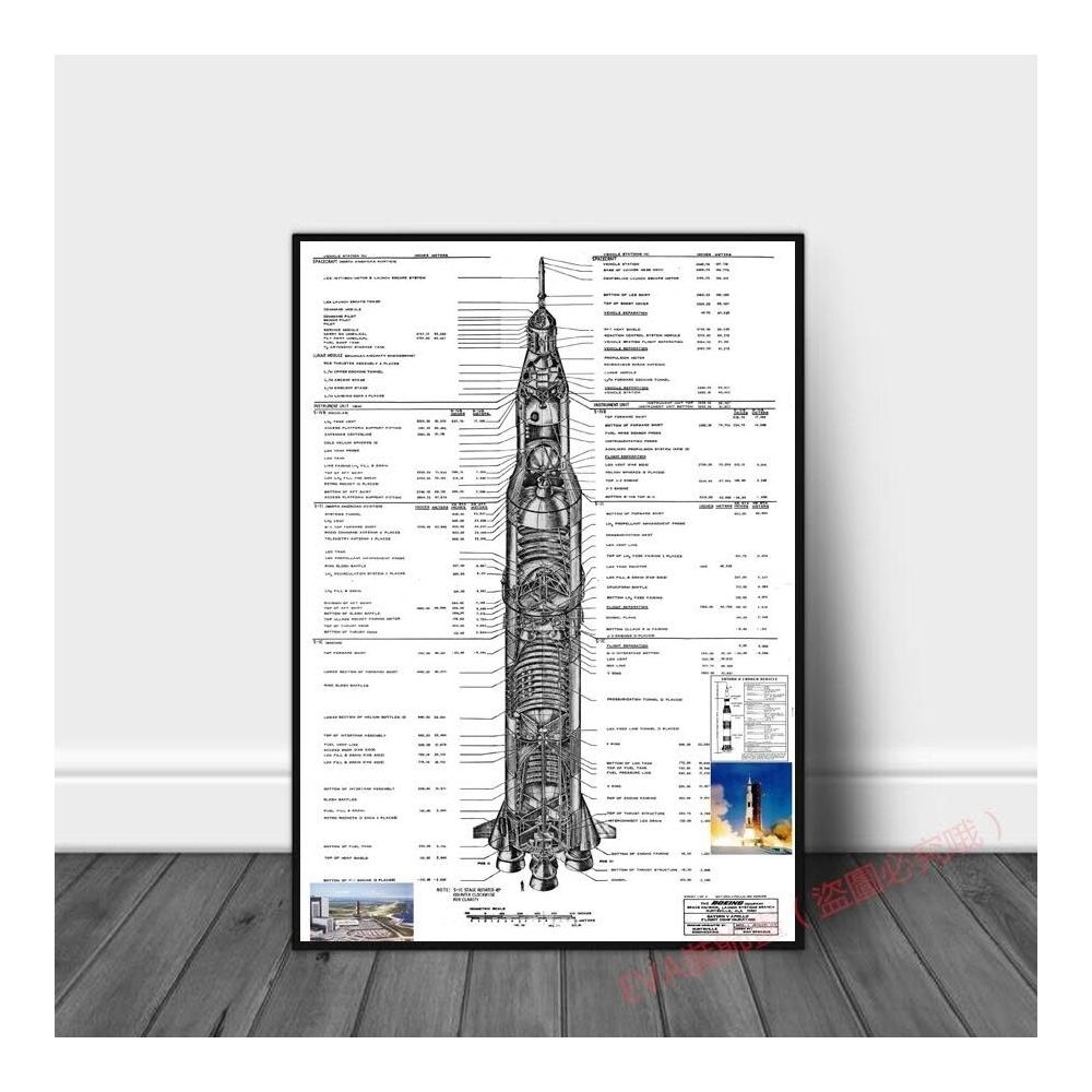 NASA 農神5號阿波羅運載火箭解析圖 設計圖 藍圖草圖 大鋁合金框掛畫無框畫系列桌面擺畫