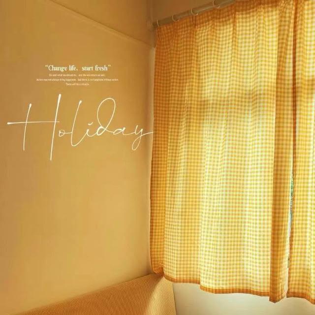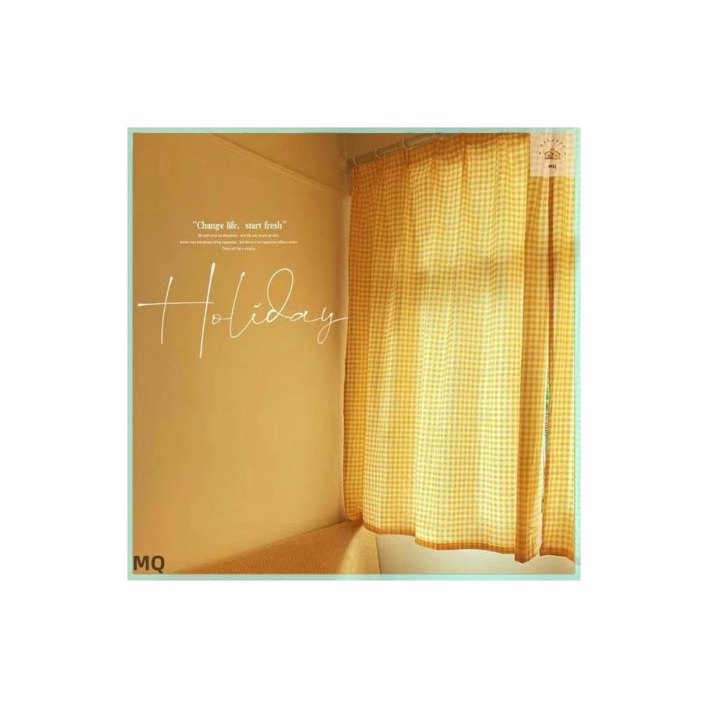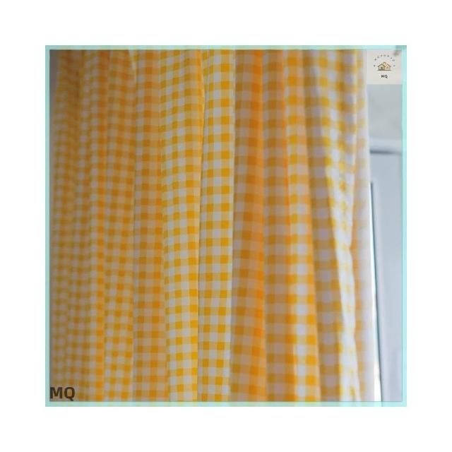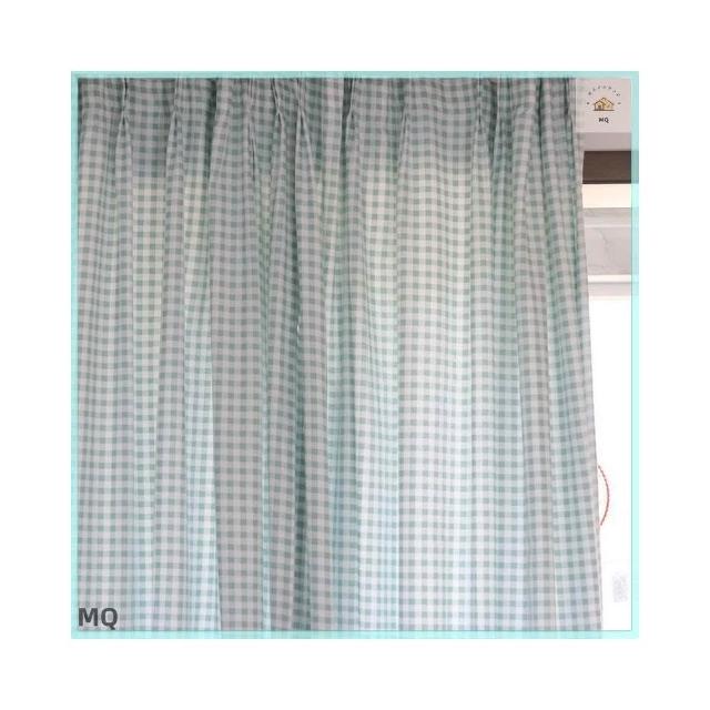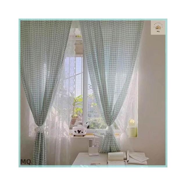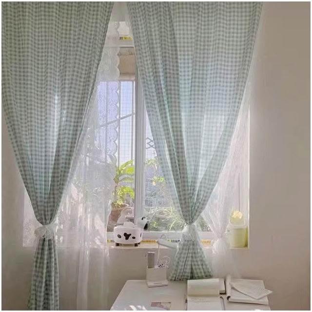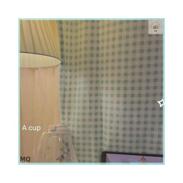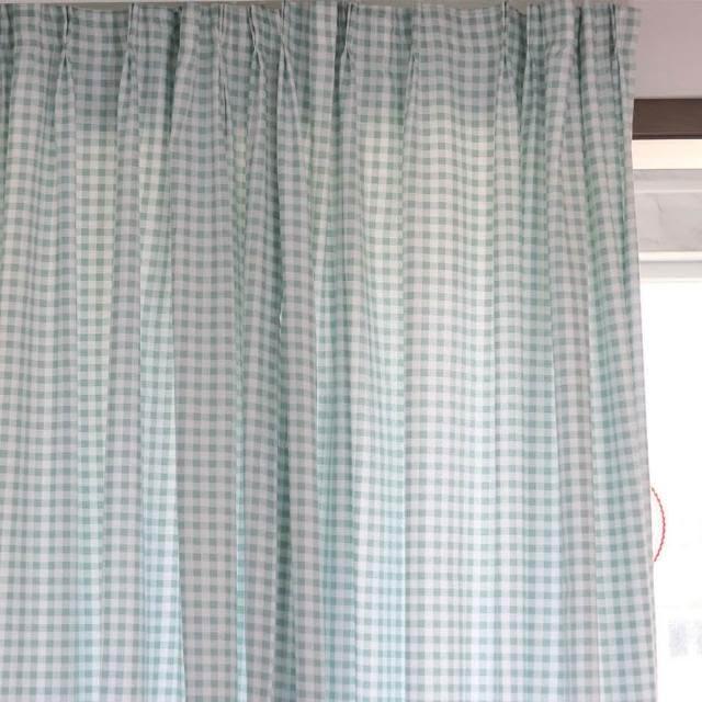 附發票小清新溫馨格子窗簾黃色綠色格子布臥室飄窗簾半遮光透光不透人簾