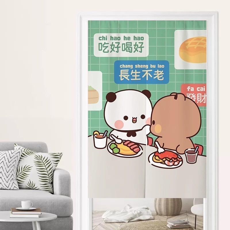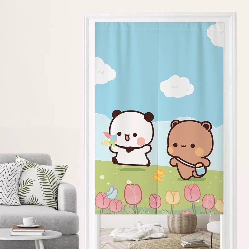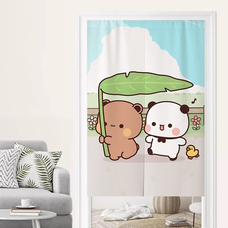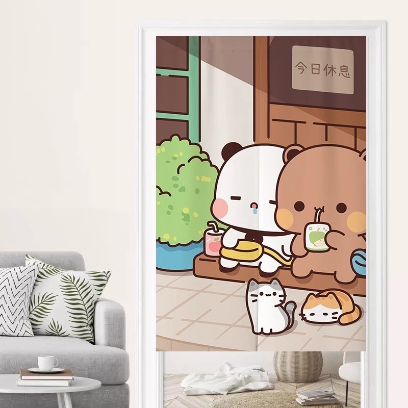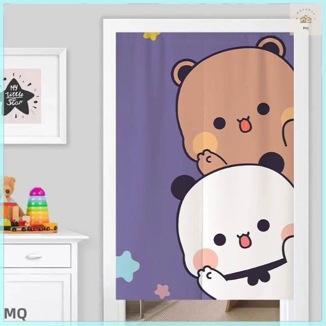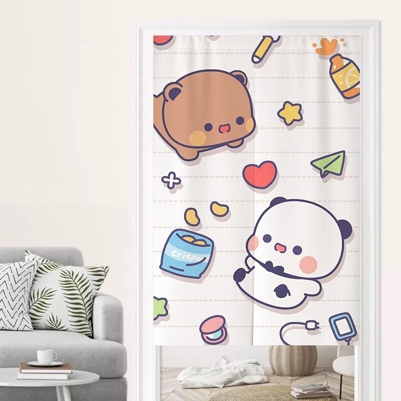 附發票客製化門簾 門簾 棉麻門簾 門簾一片式 長門簾 卡通可愛小熊門簾隔斷簾兒童房臥室半簾廚房廁所遮擋簾子穿桿免打孔布藝