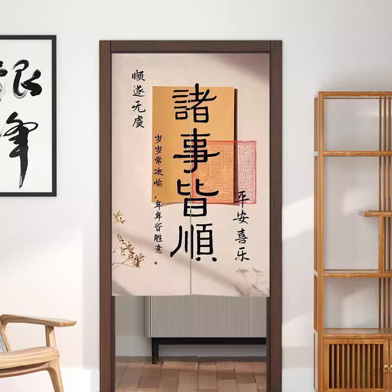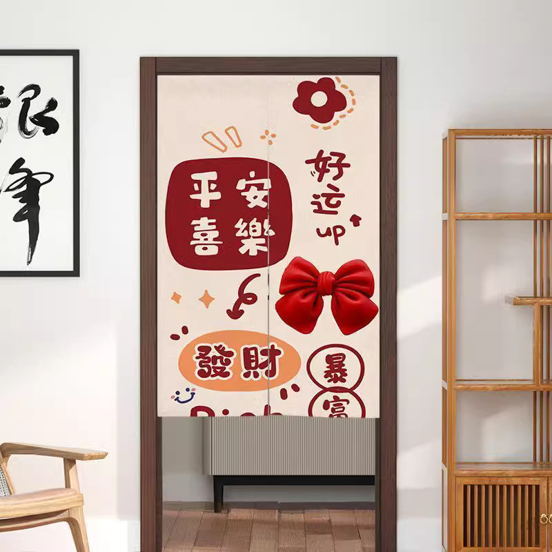 附發票平安喜樂廚房門簾衛生間廁所遮擋半簾掛布臥室隔斷簾半截短簾