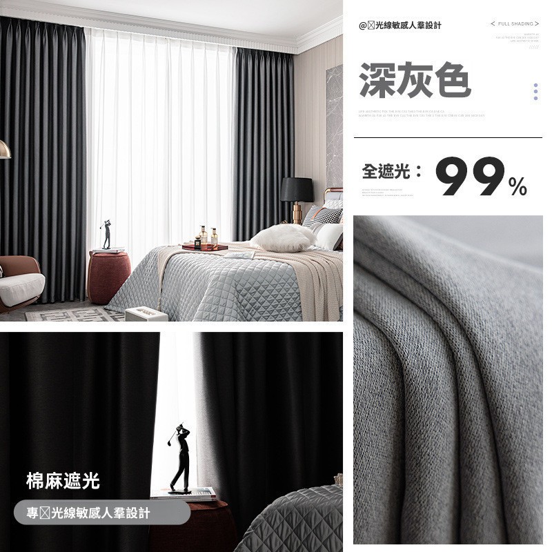 附發票2025潮會新升級居家全遮光窗簾臥室新款掛鉤式飄窗隔熱防曬擋避光防光遮陽布黑色民宿賓館首選
