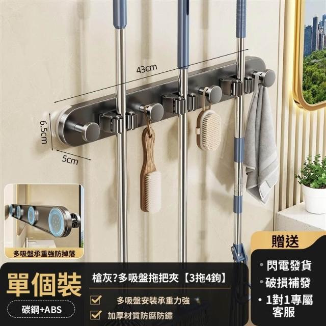 附發票 吸盤拖把壁掛夾免打孔浴室掛鉤衛生間掛拖布掃把強力固定收納神器