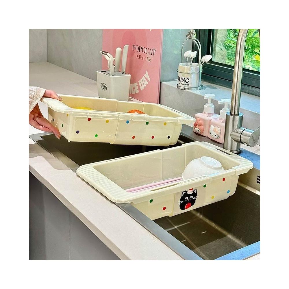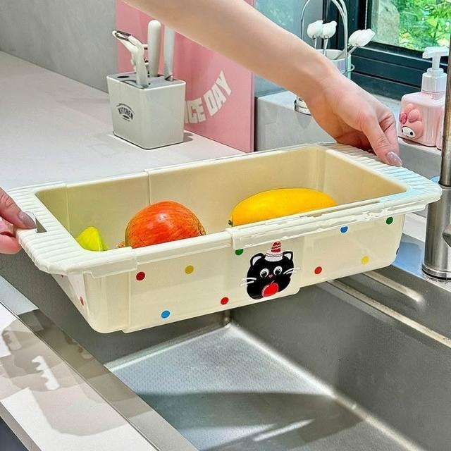 多功能廚房水槽伸縮瀝水架碗碟收納水池家用方形洗碗池餐具瀝水籃碗盤瀝水籃瀝碗籃瀝水碗盤架水果蔬菜瀝水籃子