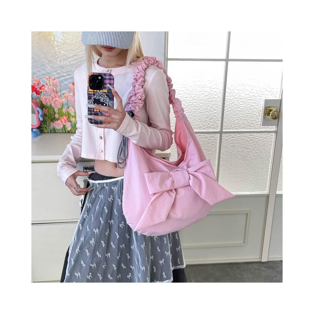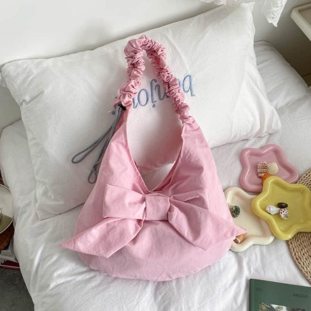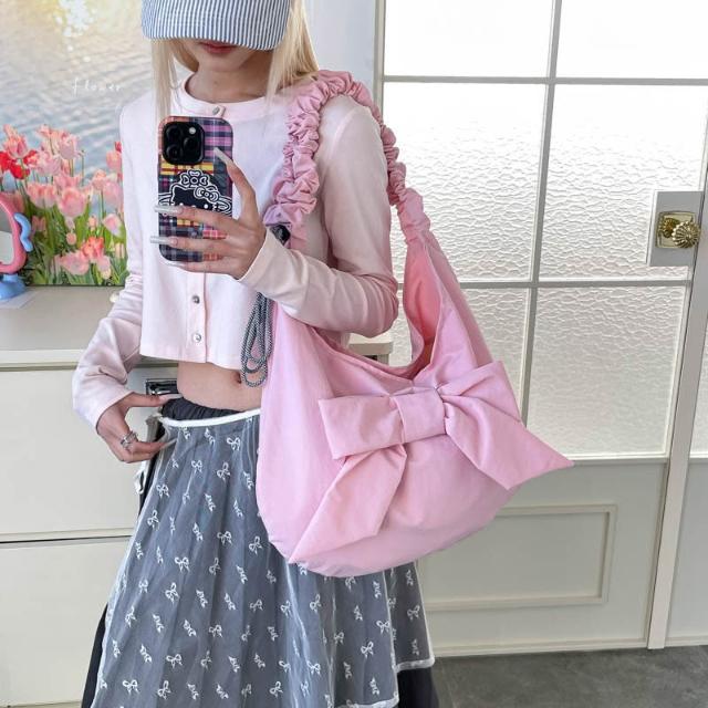 附發票甜美風粉色通勤腋下包包女2026春季新款蝴蝶結少女心逛街單肩包包