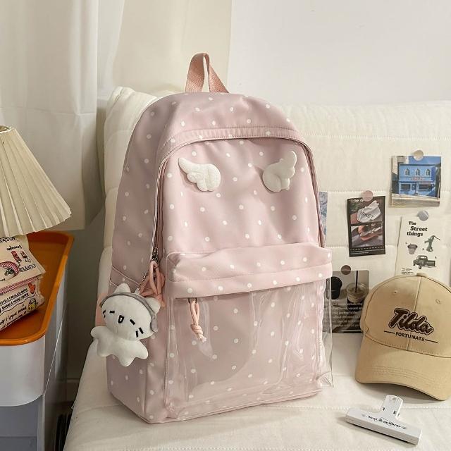 附發票韓版波點可愛天使翅膀少女心甜美小背包森系小清新初中女生雙肩包