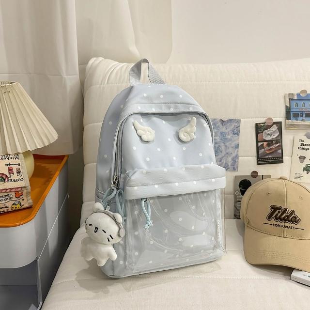 附發票韓版波點可愛天使翅膀少女心甜美小背包森系小清新初中女生雙肩包