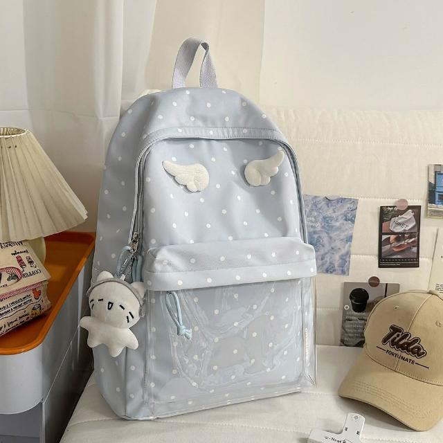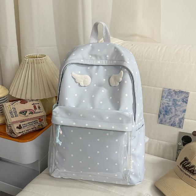 附發票韓版波點可愛天使翅膀少女心甜美小背包森系小清新初中女生雙肩包
