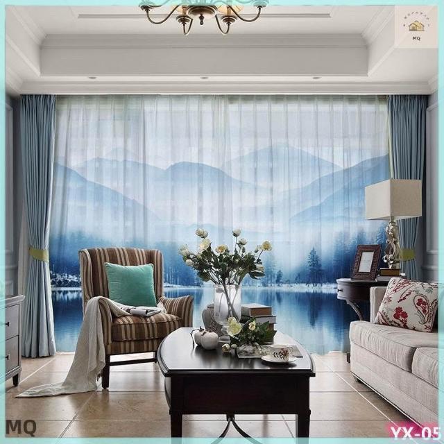 附發票新中式山水畫窗紗透光不透人 古典風印花白紗紗簾 窗簾紗 臥室客廳落地飄窗窗簾 隔斷紗簾 隔間簾 半遮光紗簾 垂直簾