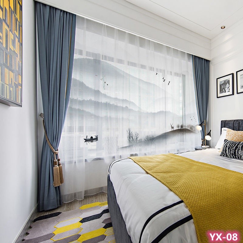 附發票新中式山水畫窗紗透光不透人 古典風印花白紗紗簾 窗簾紗 臥室客廳落地飄窗窗簾 隔斷紗簾 隔間簾 半遮光紗簾 垂直簾