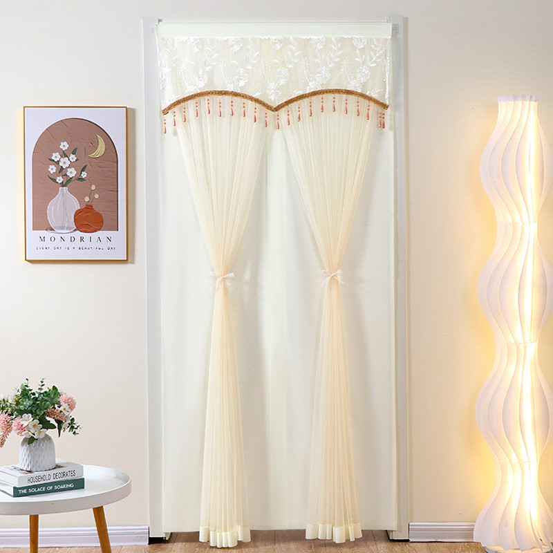 附發票[爆款]門簾家用臥室布藝蕾絲四季紗簾雙層防蚊雙開打孔遮擋裝飾隔斷6.28 UR2N