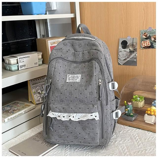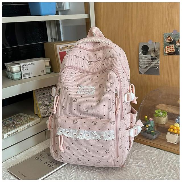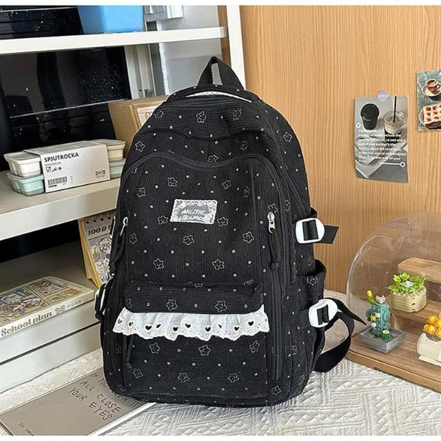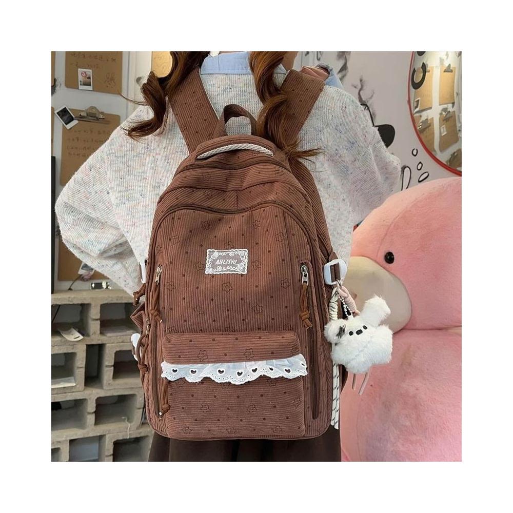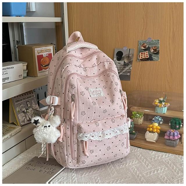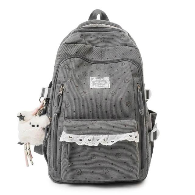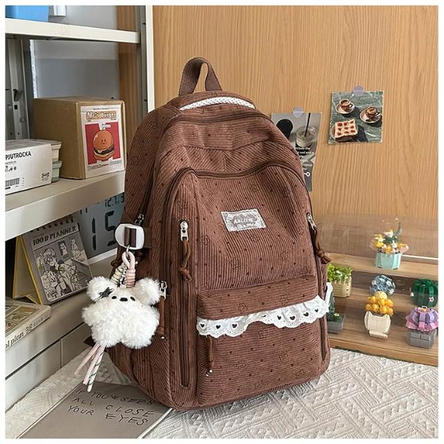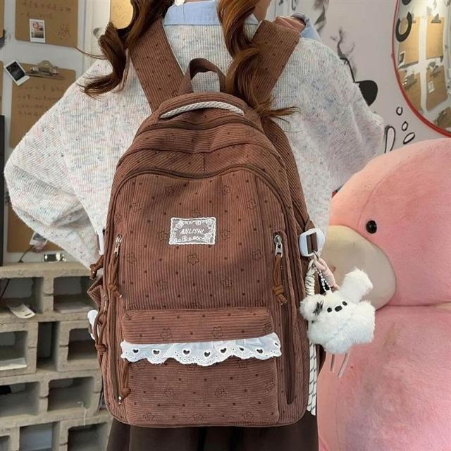 附發票韓系高中學生書包女ins休閑輕便上課背包百搭燈芯絨大容量雙肩包