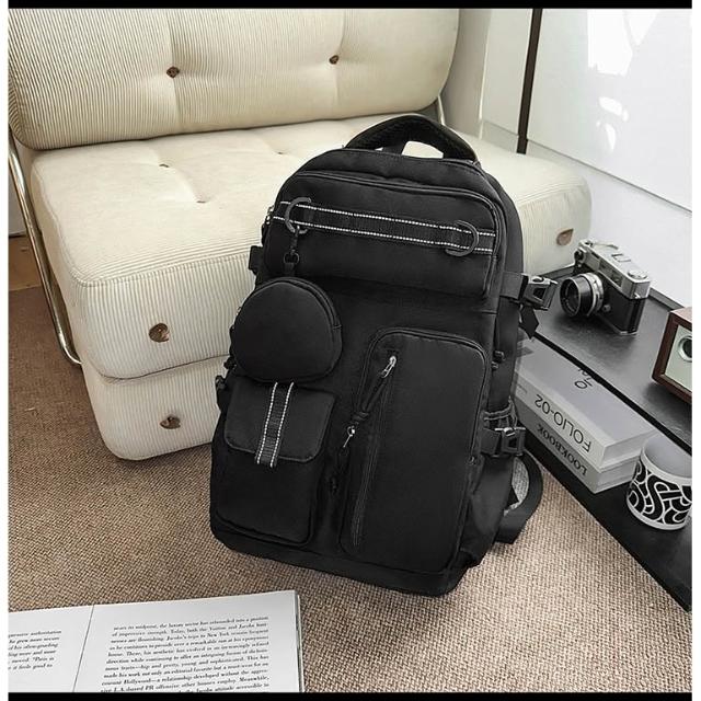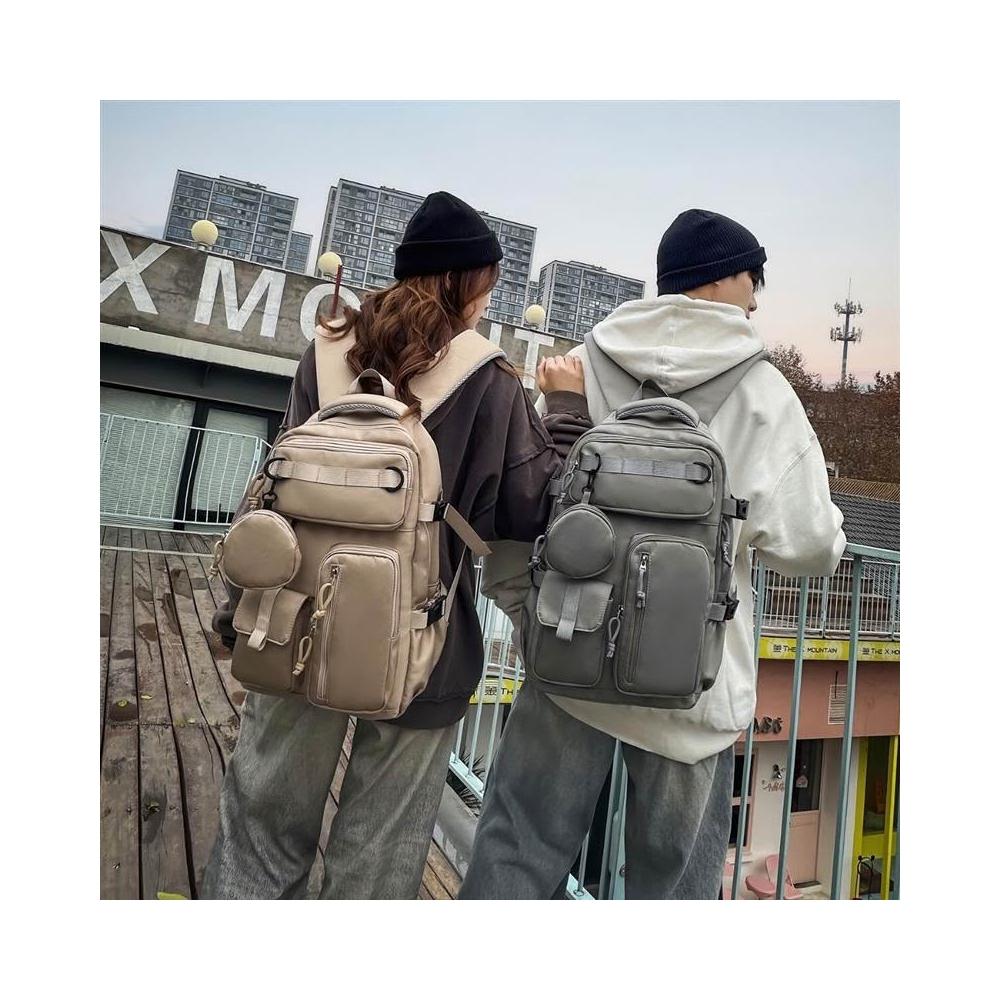 附發票戶外工裝風雙肩包男士大容量多口袋旅行背包女輕便百搭大學生書包