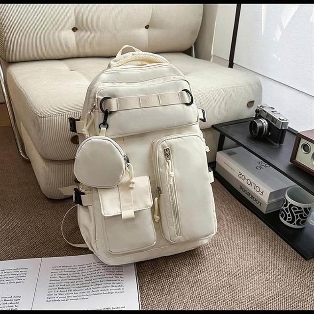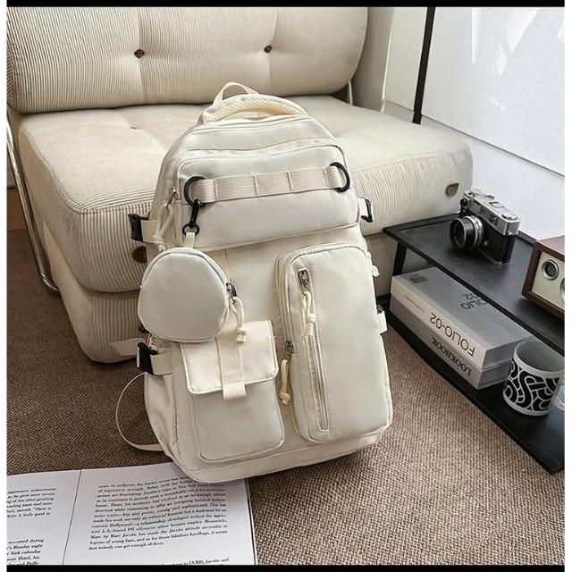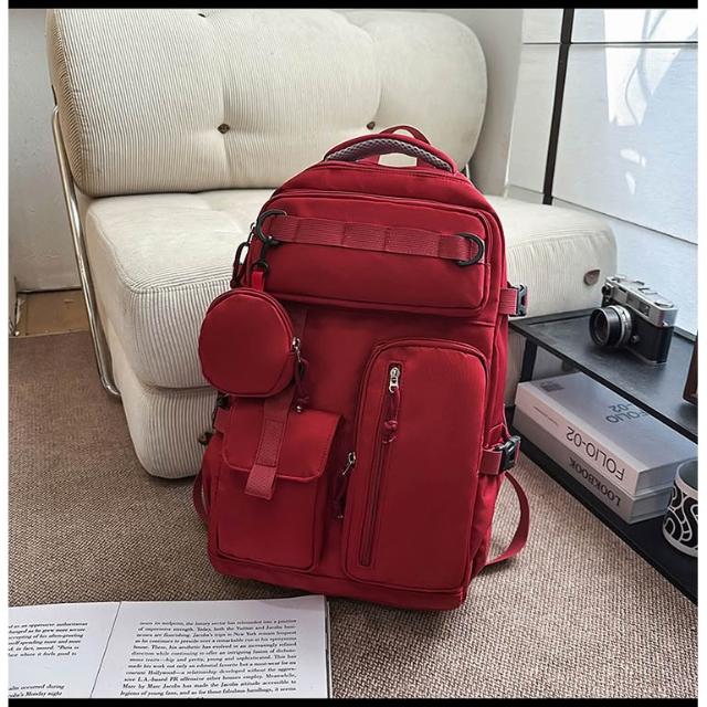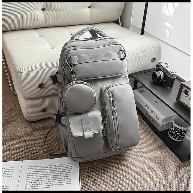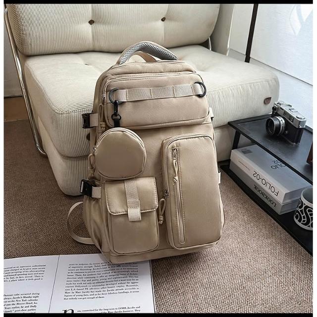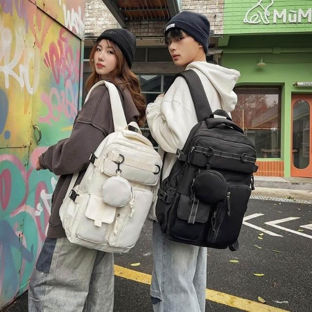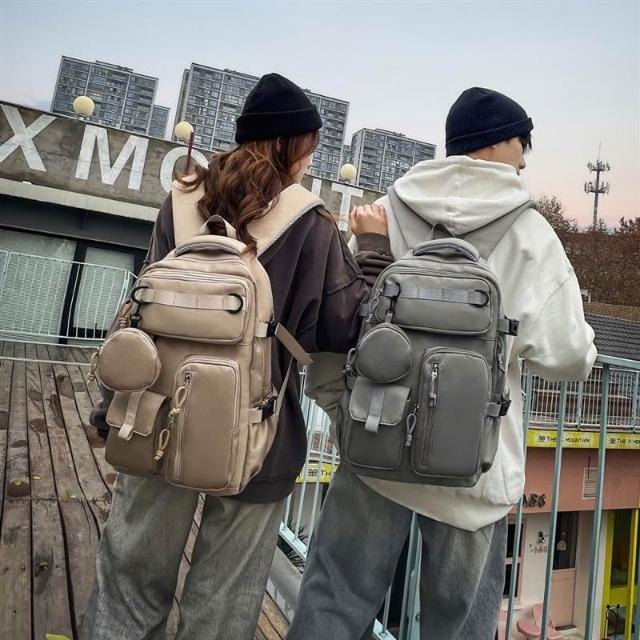 附發票戶外工裝風雙肩包男士大容量多口袋旅行背包女輕便百搭大學生書包