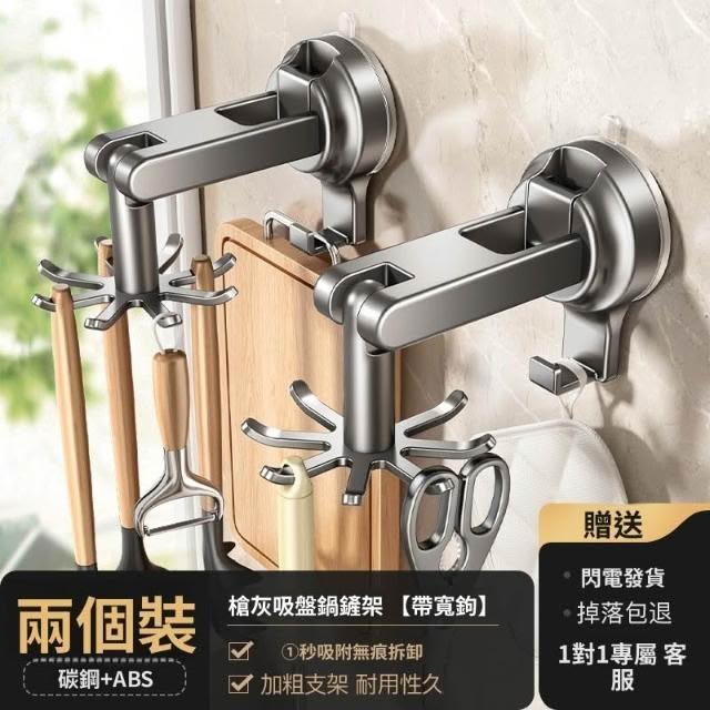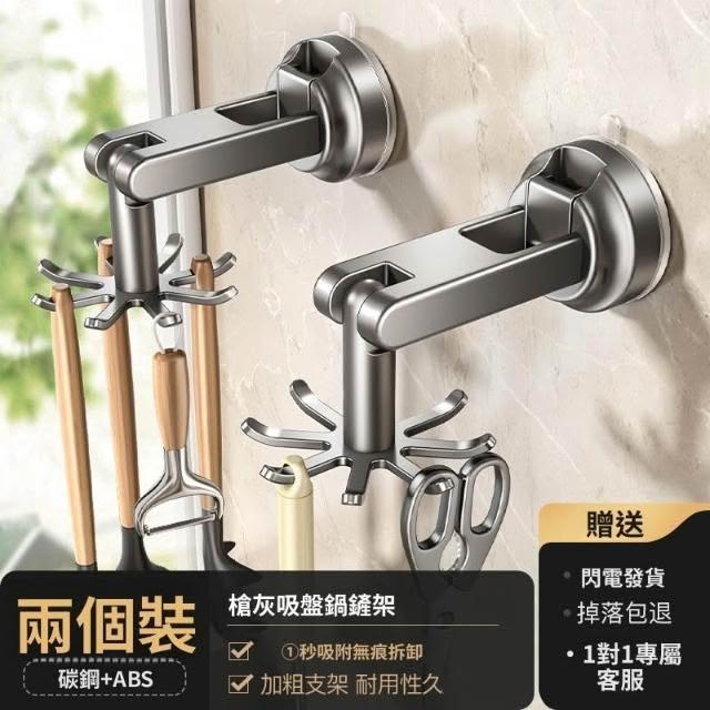 附發票 廚房旋轉吸盤掛鉤置物架鍋鏟勺子鏟子掛架免打孔廚具收納架