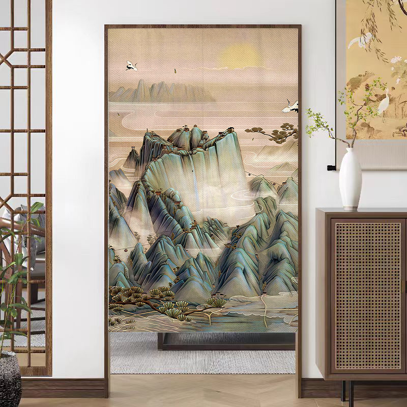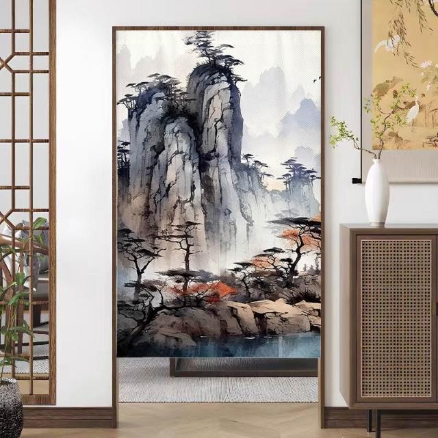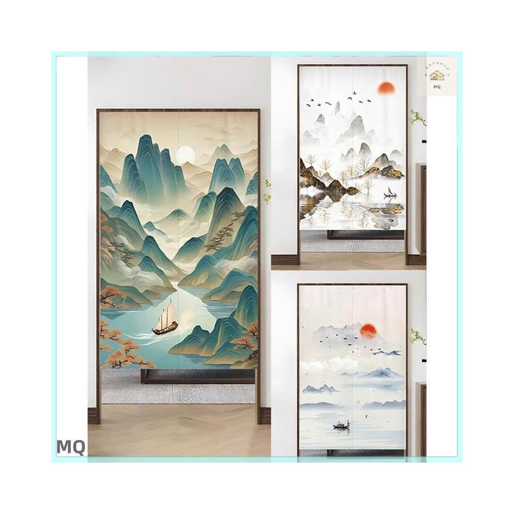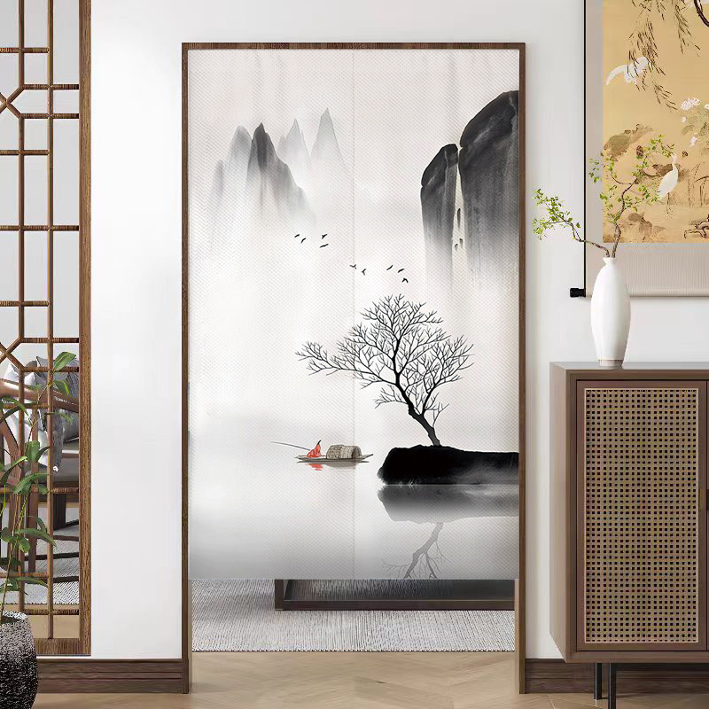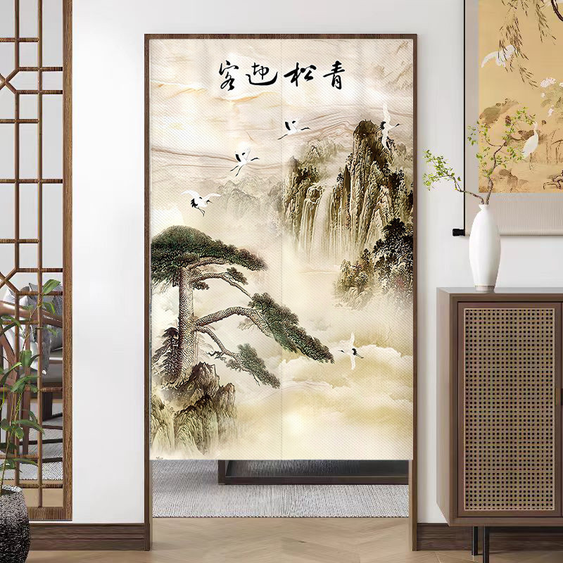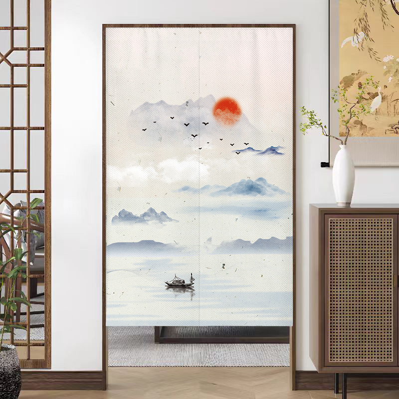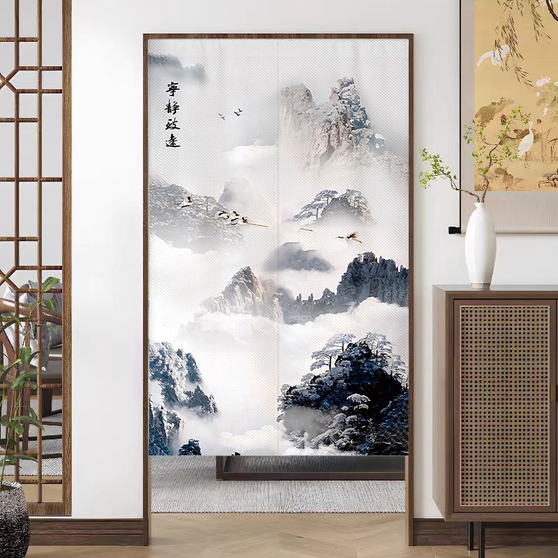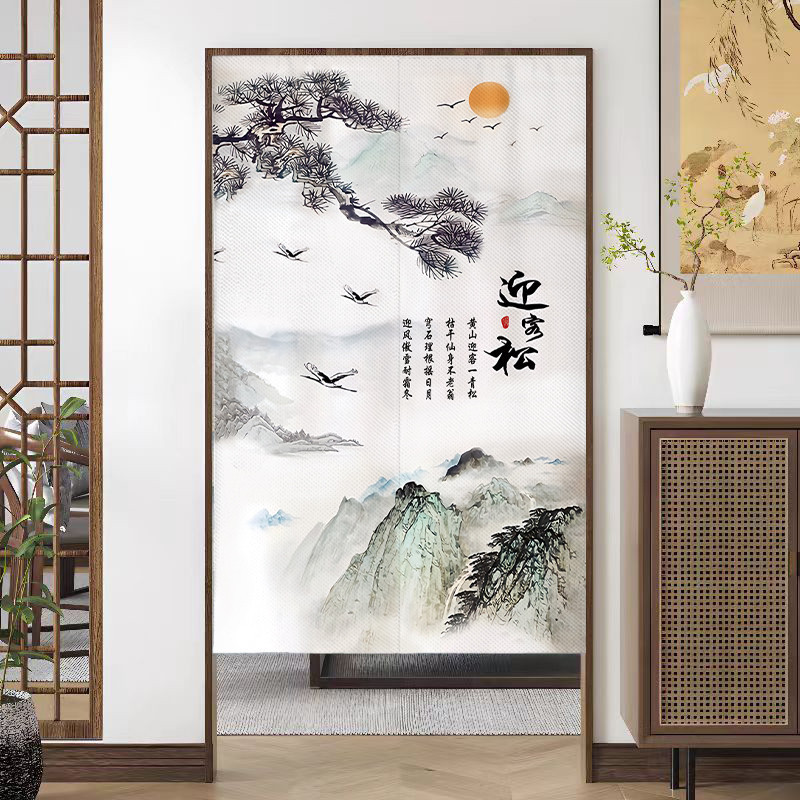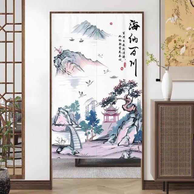附發票中式山水家用房間過道門簾免打孔臥室隔斷簾衛生間半遮擋布藝簾子
