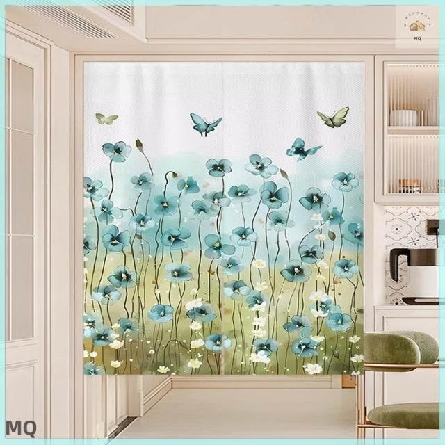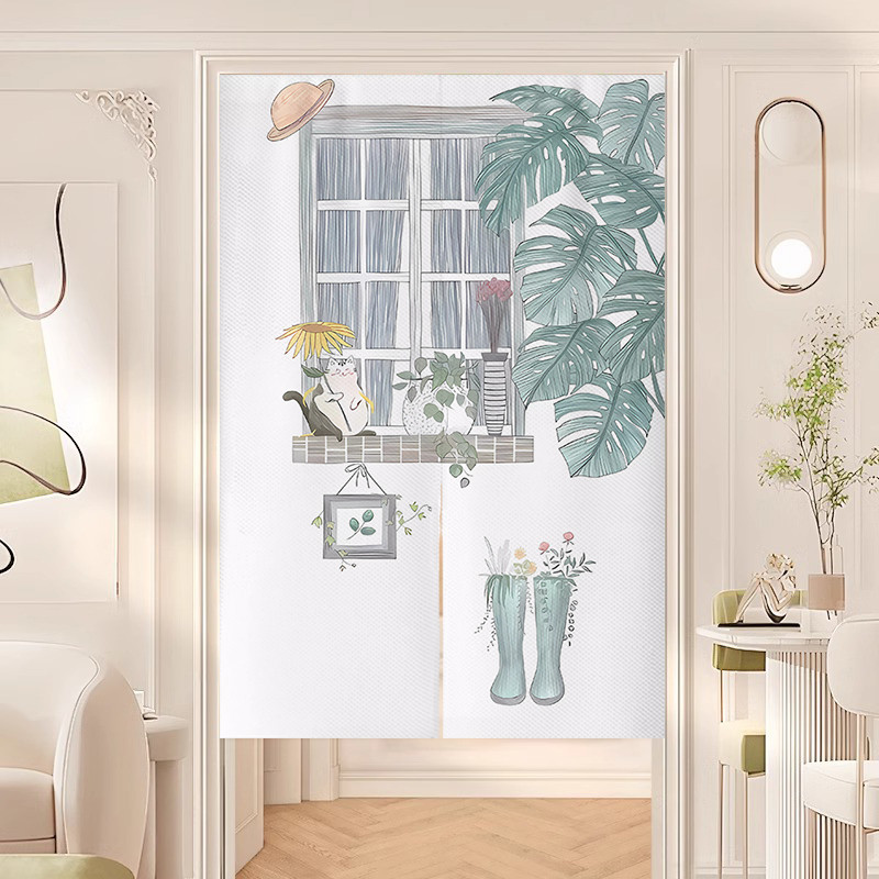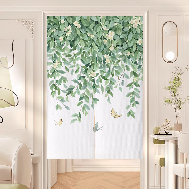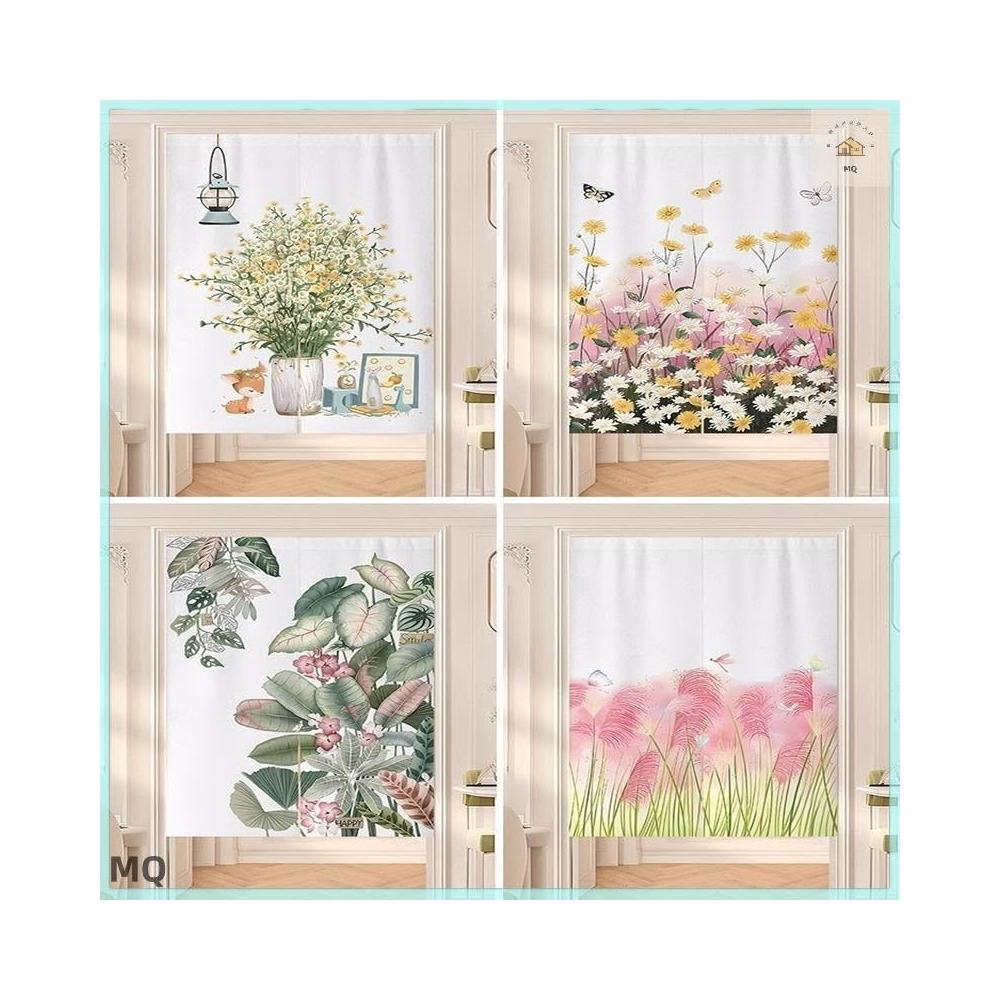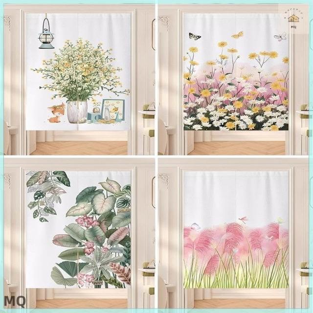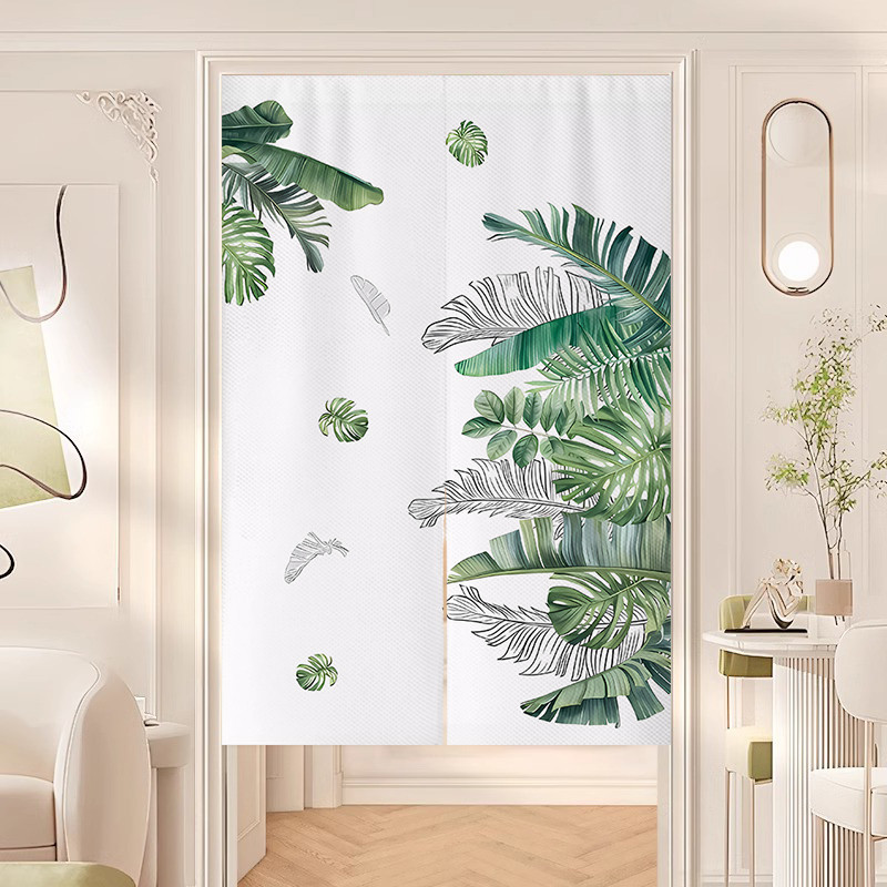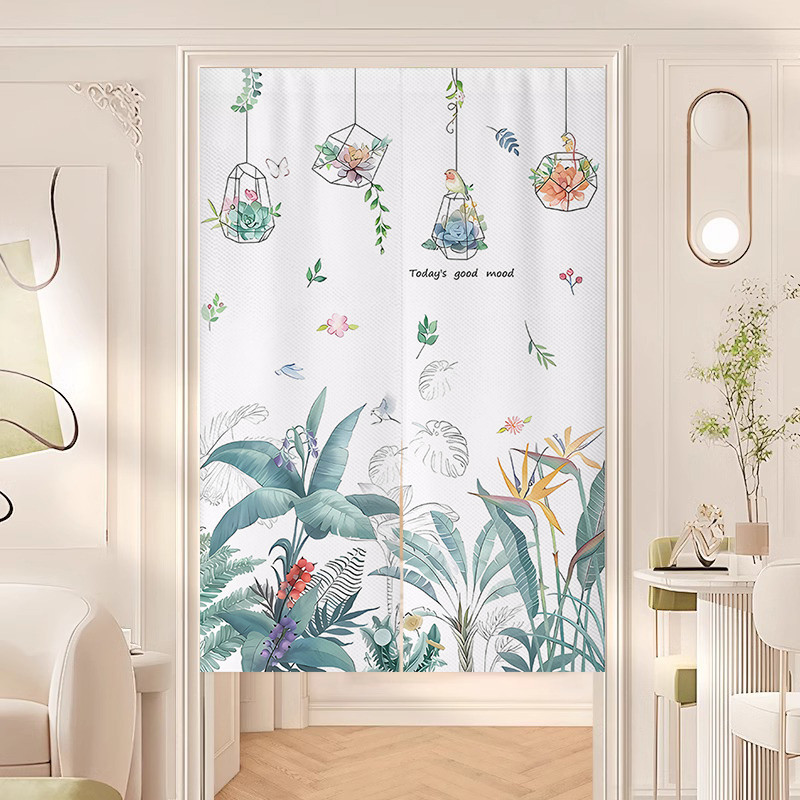 附發票清新綠植門簾臥室房間家用隔斷簾免打孔廚房衛生間遮擋簾半截布簾