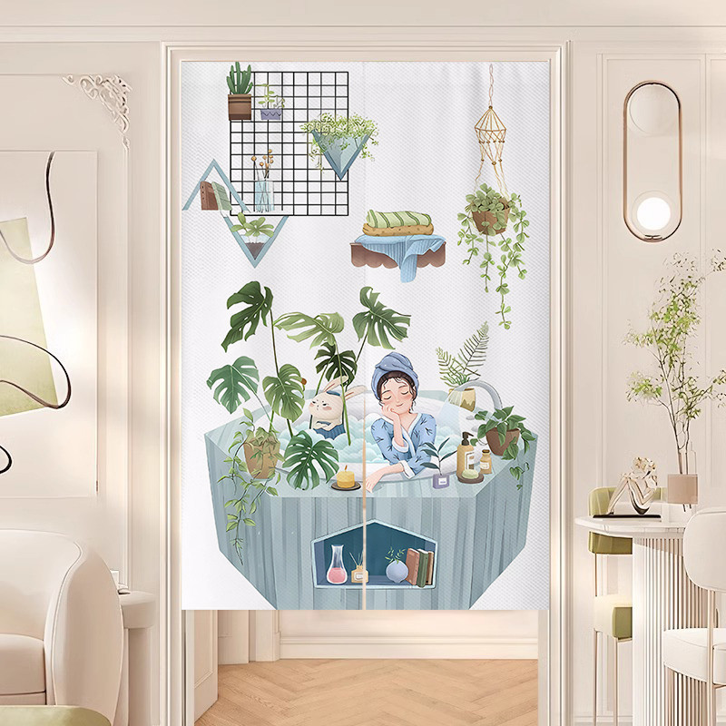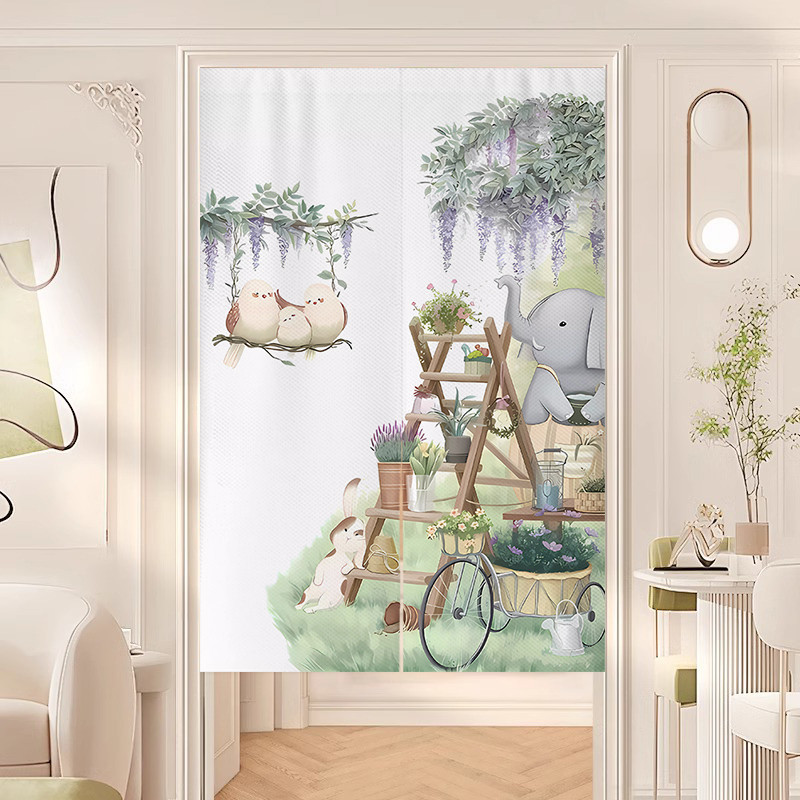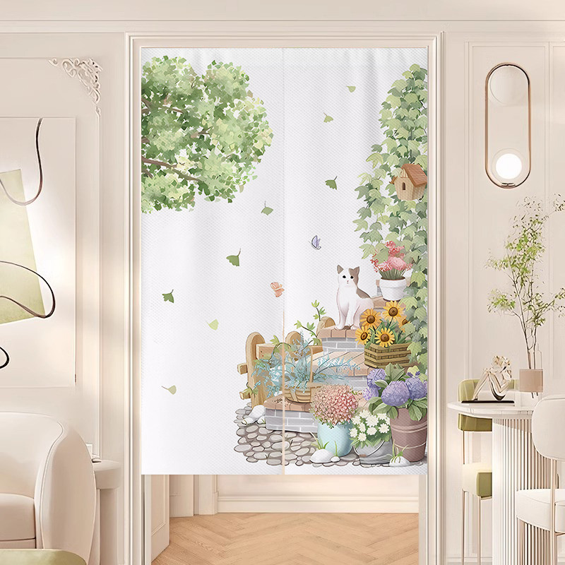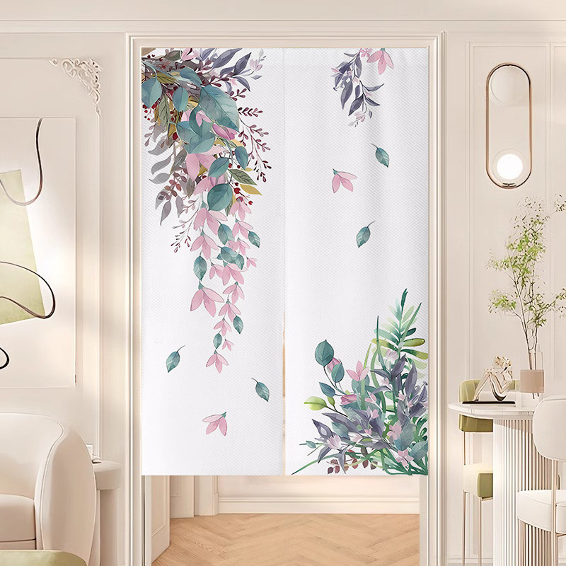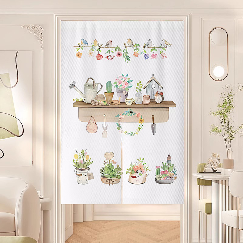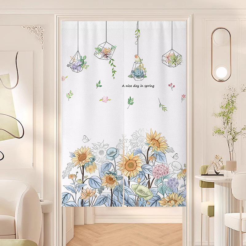 附發票清新綠植門簾臥室房間家用隔斷簾免打孔廚房衛生間遮擋簾半截布簾