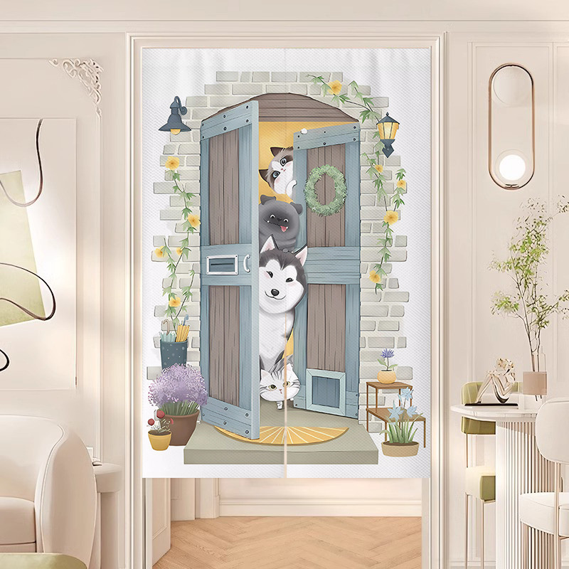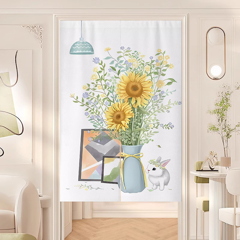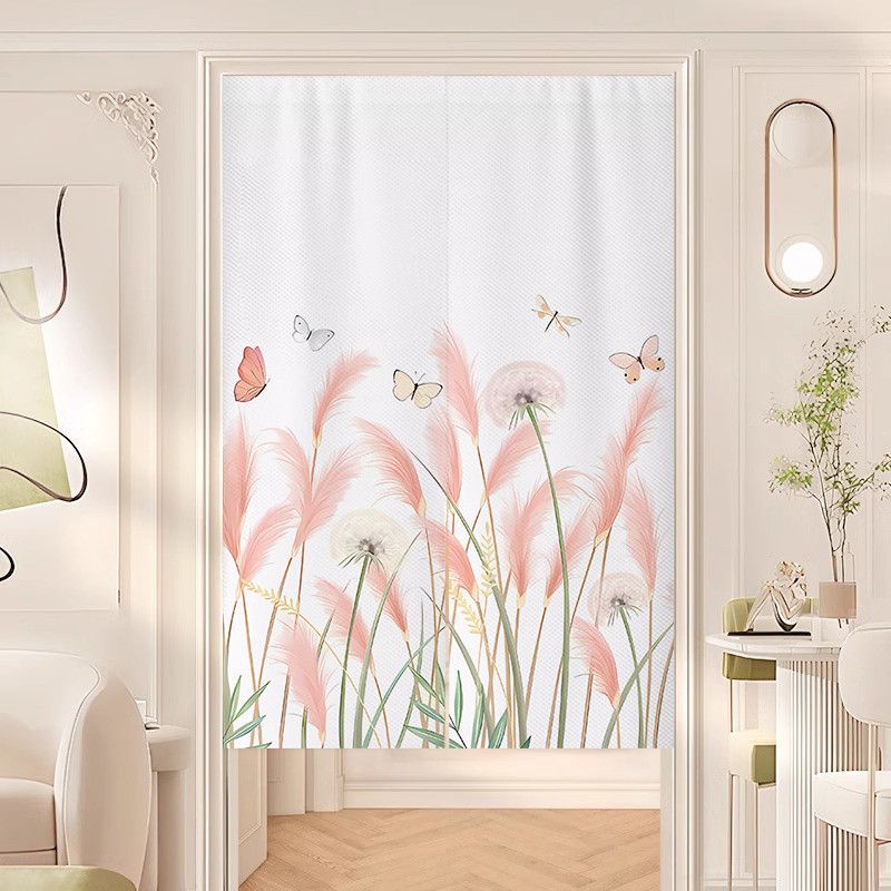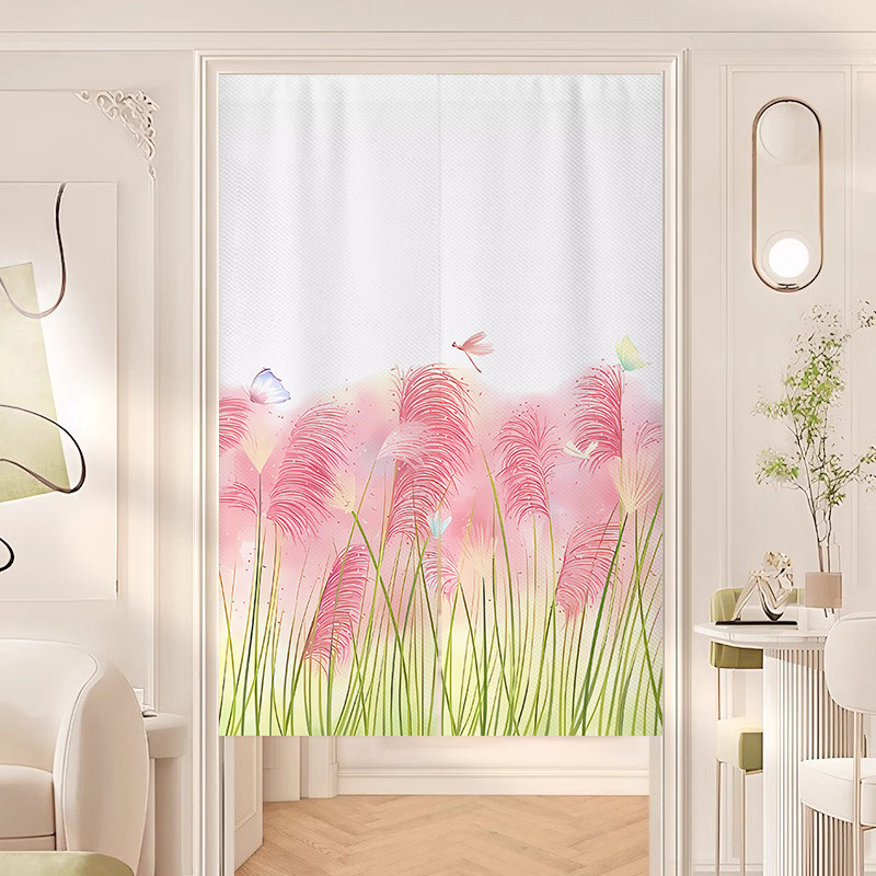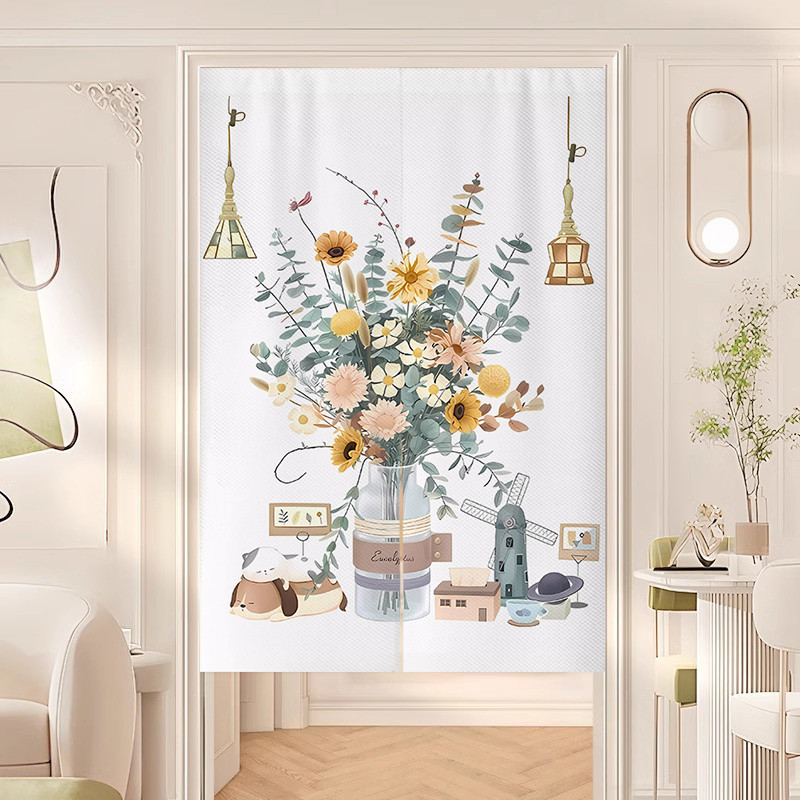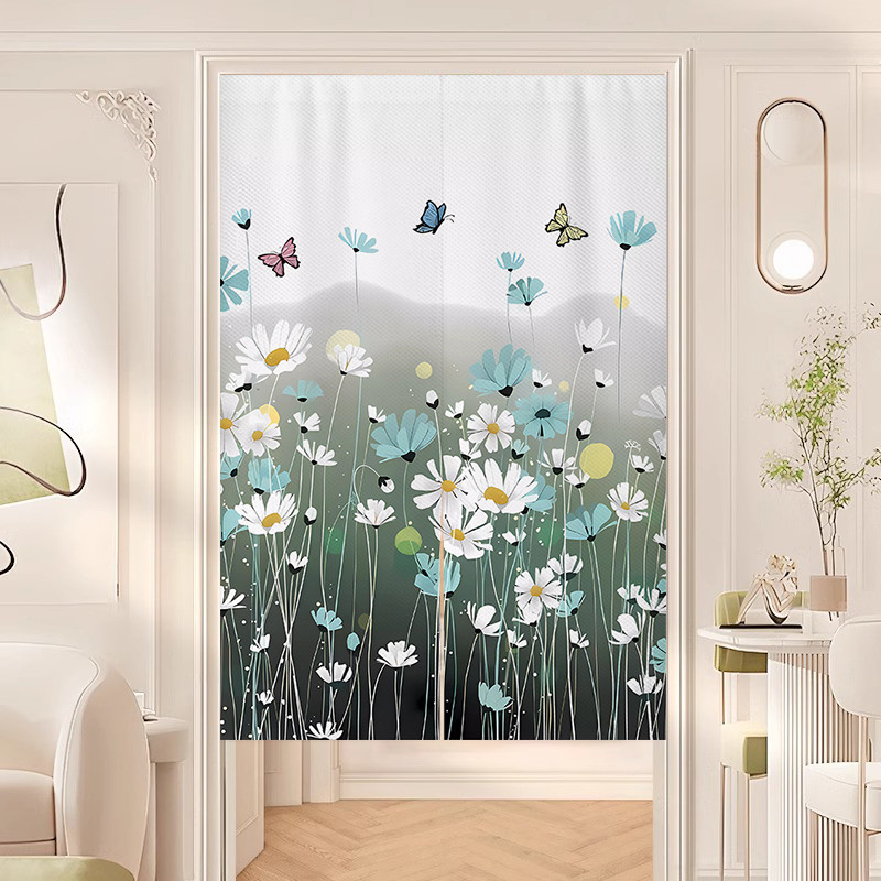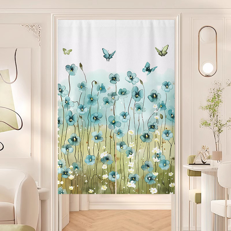 附發票清新綠植門簾臥室房間家用隔斷簾免打孔廚房衛生間遮擋簾半截布簾