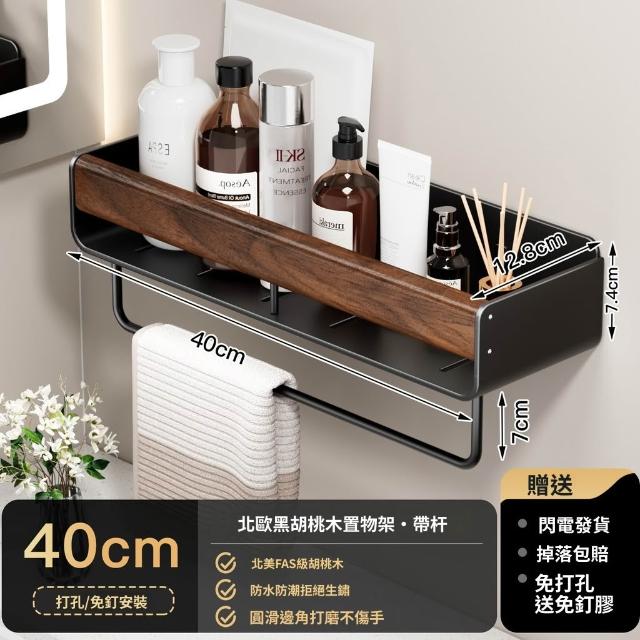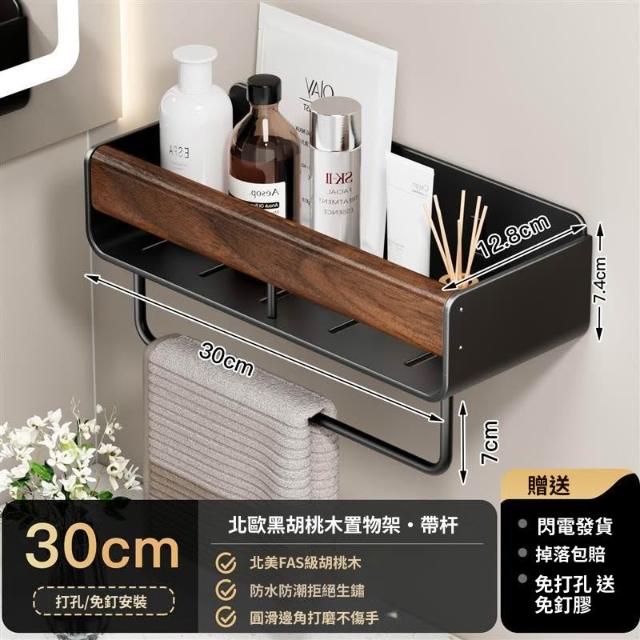 附發票 胡桃木浴室置物架免打孔洗手洗漱臺收納衛生間廁所壁掛式墻上架子