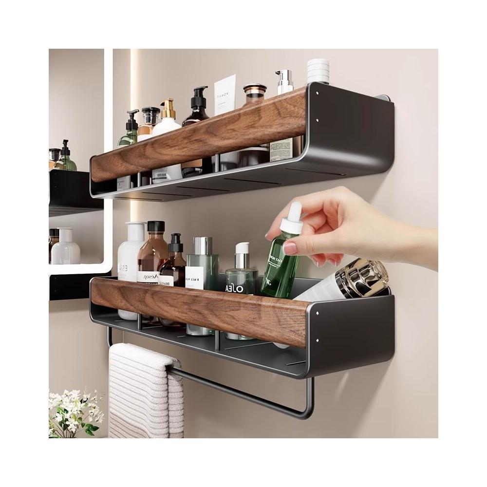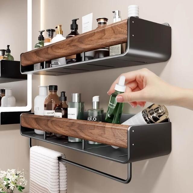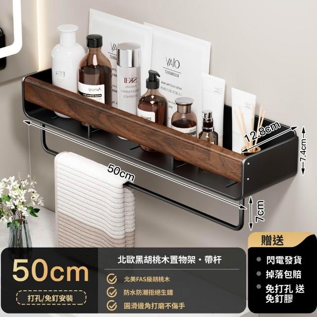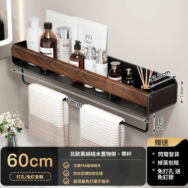 附發票 胡桃木浴室置物架免打孔洗手洗漱臺收納衛生間廁所壁掛式墻上架子