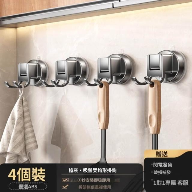 附發票 吸盤廚房掛鉤免打孔置物架鍋鏟勺子收納掛架櫥櫃門後真空強力粘鉤