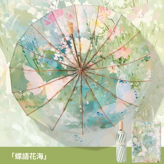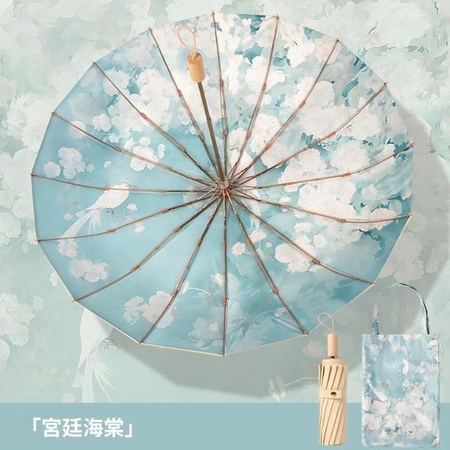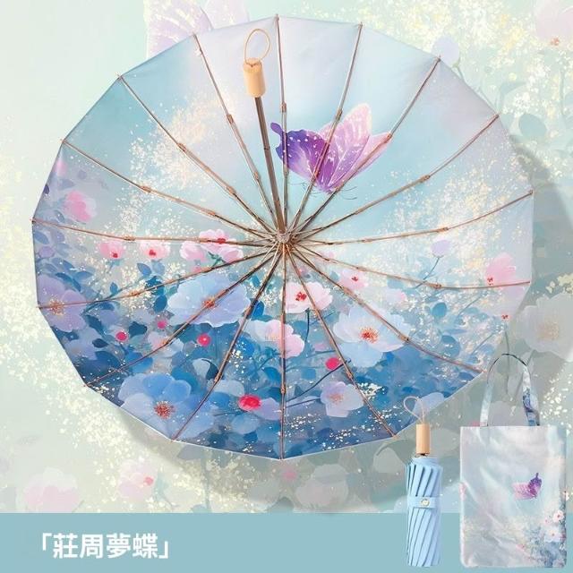 新中式16骨復古防雨傘莫奈油畫防曬傘彩膠傘出行旅遊水墨畫工藝傘