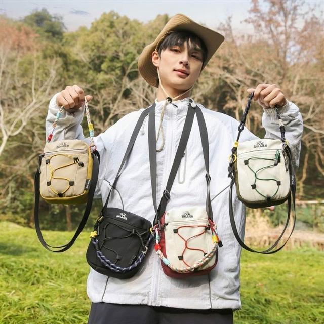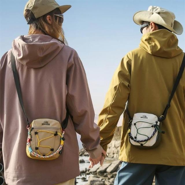 附發票戶外斜挎包男女輕量化輕便休閑運動小背包方形單肩包出遊手機包