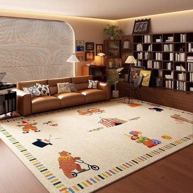 可客製 附發票卡通小狗客廳地毯耐髒高級感滿鋪房間沙發茶幾毯可擦免洗家用地墊