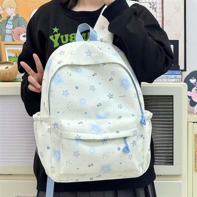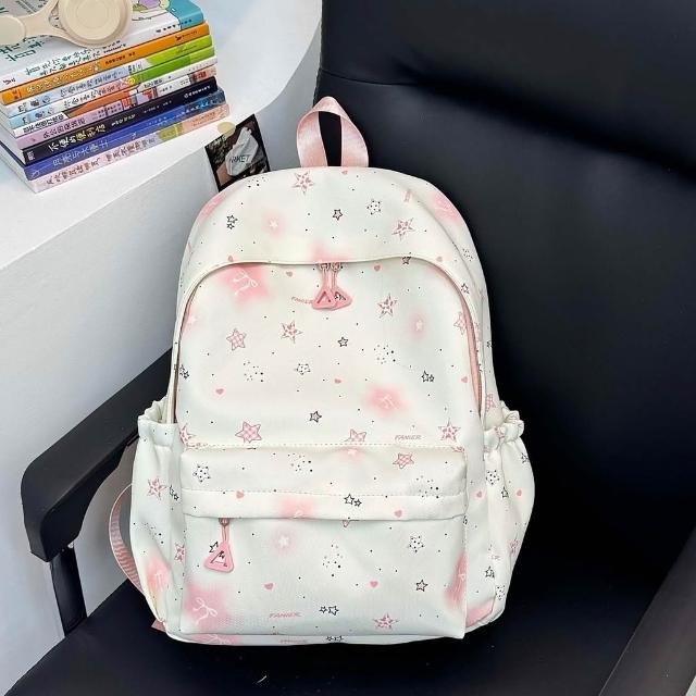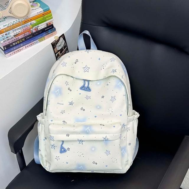 附發票高顏值森系甜美星星印花雙肩包春季新款小學生春遊研學可愛小背包