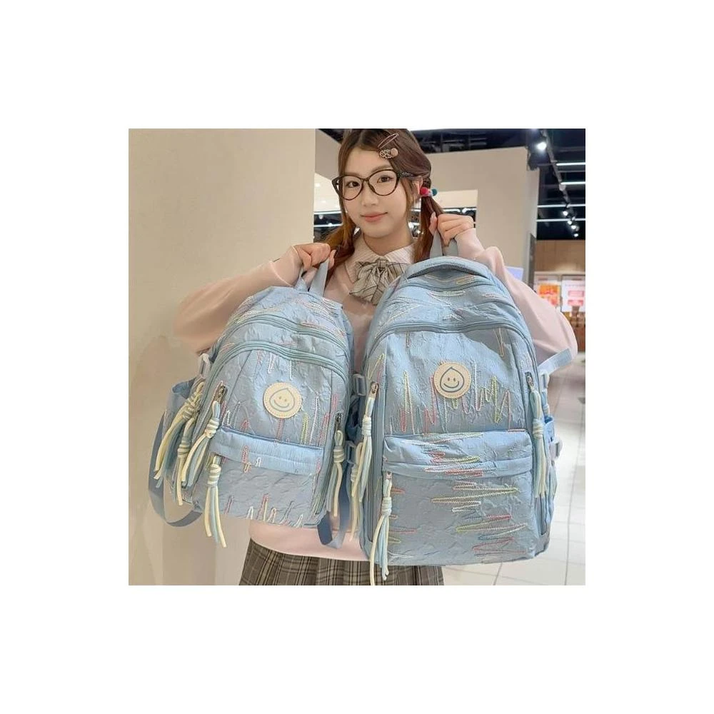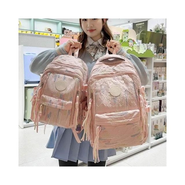 附發票日系ins初中生高中學生書包女 可愛少女百搭大容量雙肩包上課背包