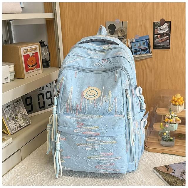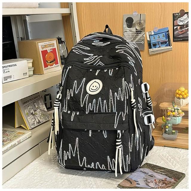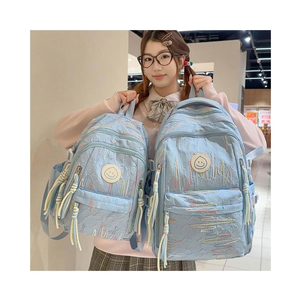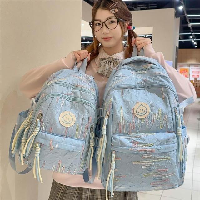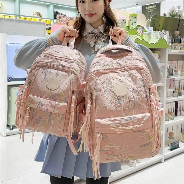 附發票日系ins初中生高中學生書包女 可愛少女百搭大容量雙肩包上課背包