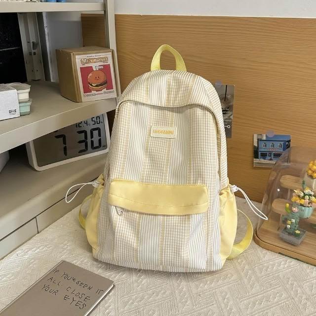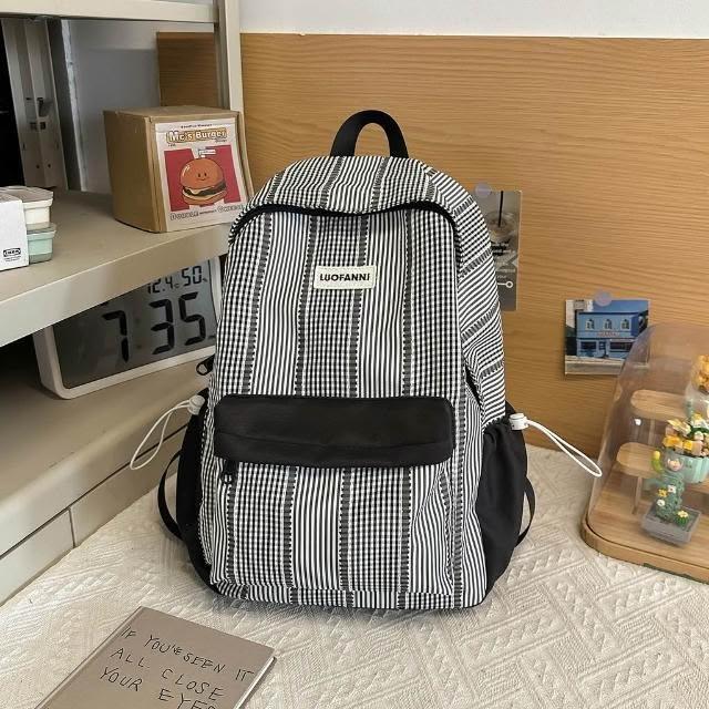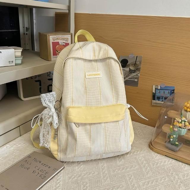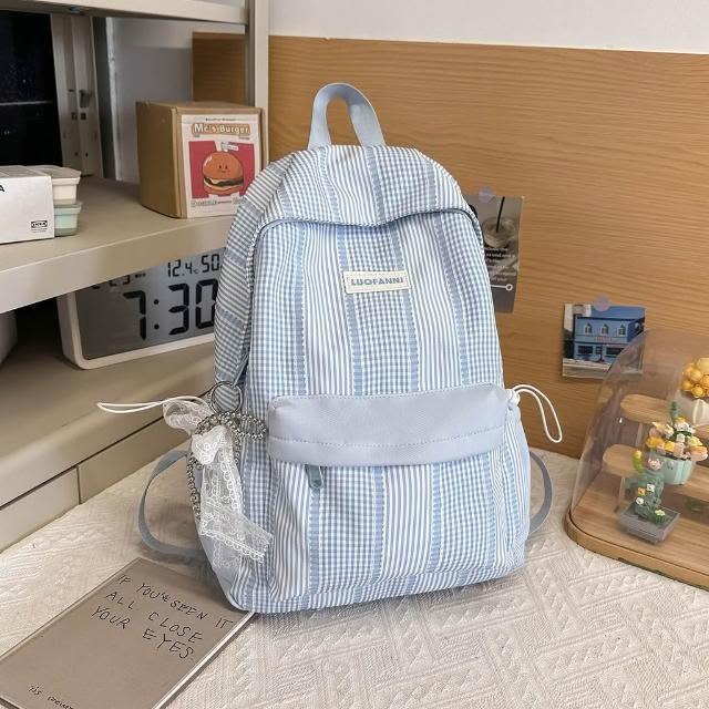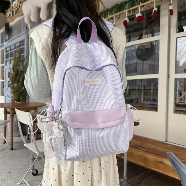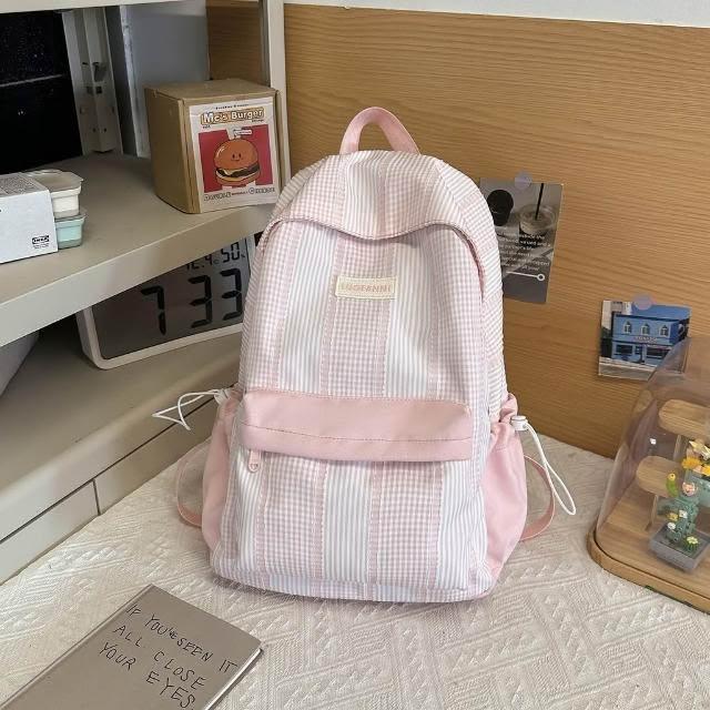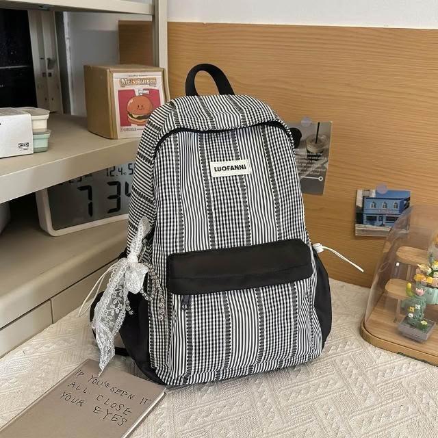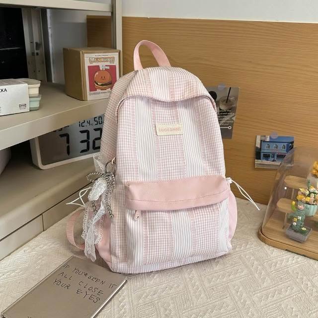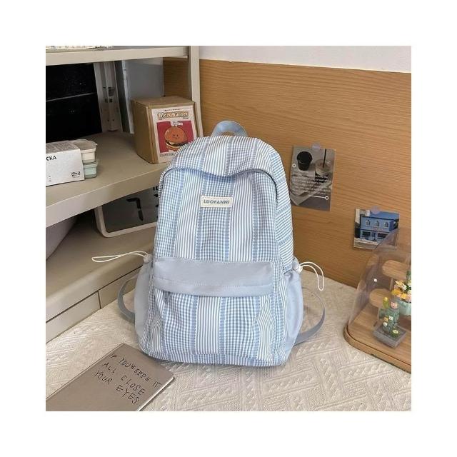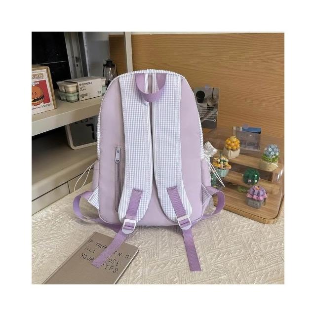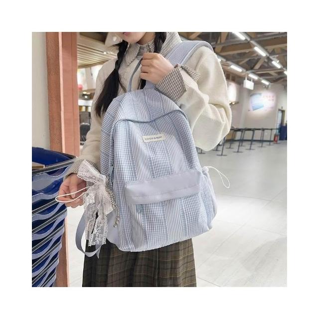 附發票春季新款高顏值甜美軟妹子春遊踏青小雙肩包格子學院風學生書包