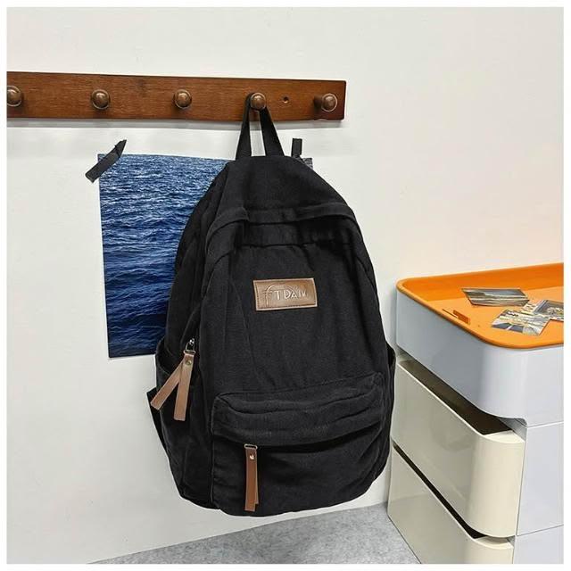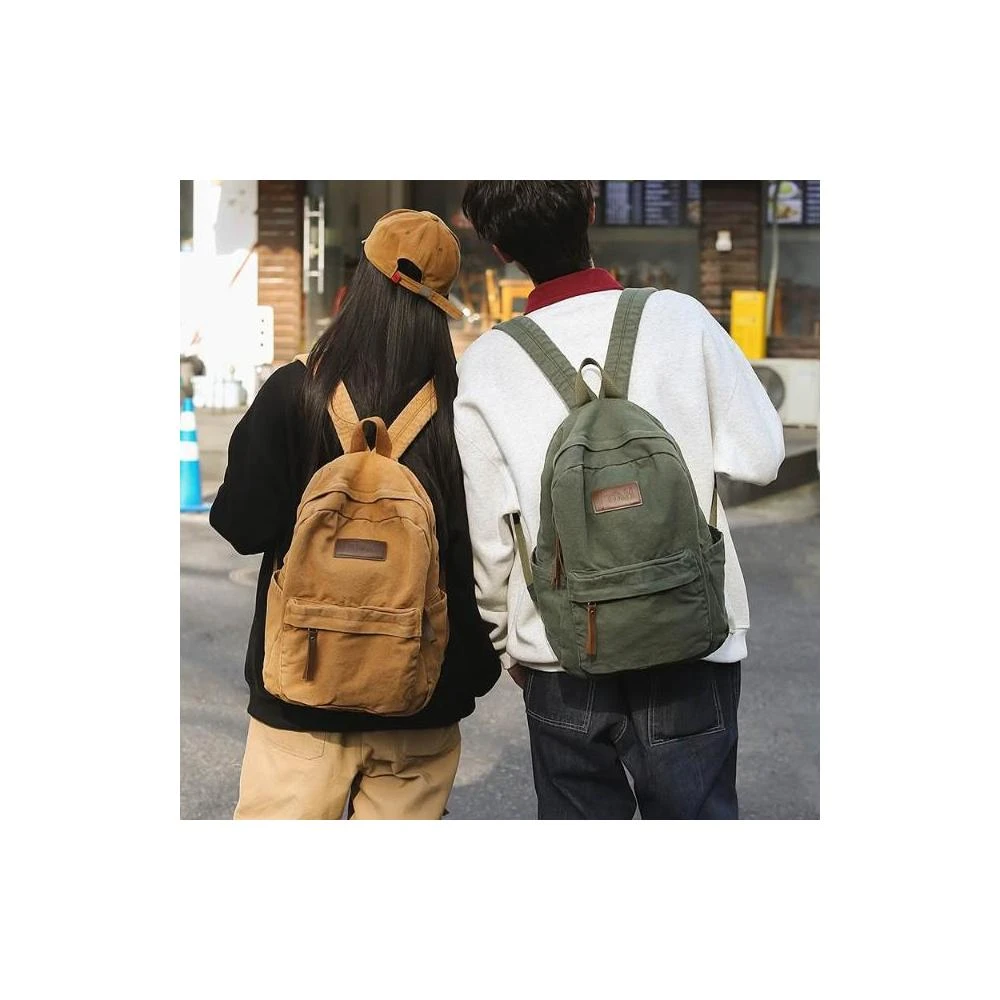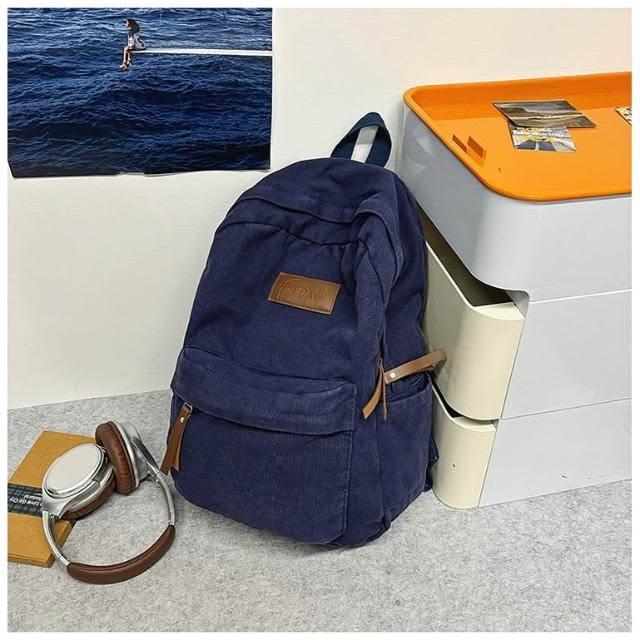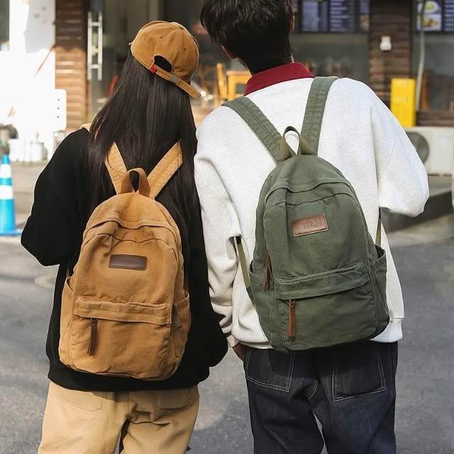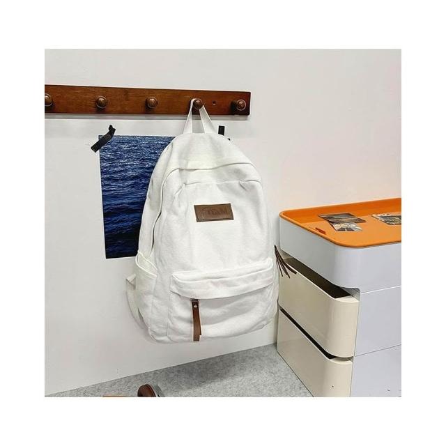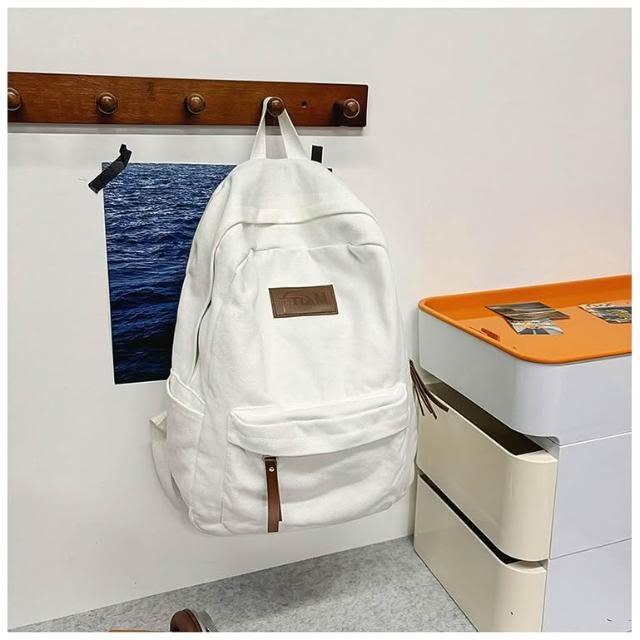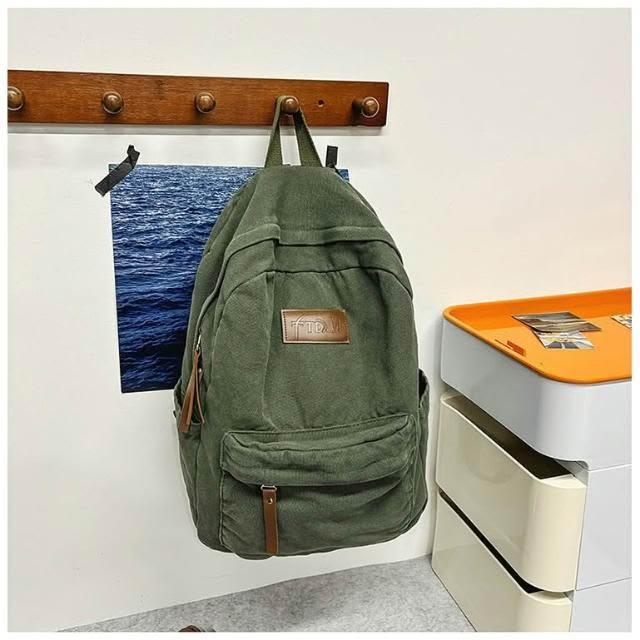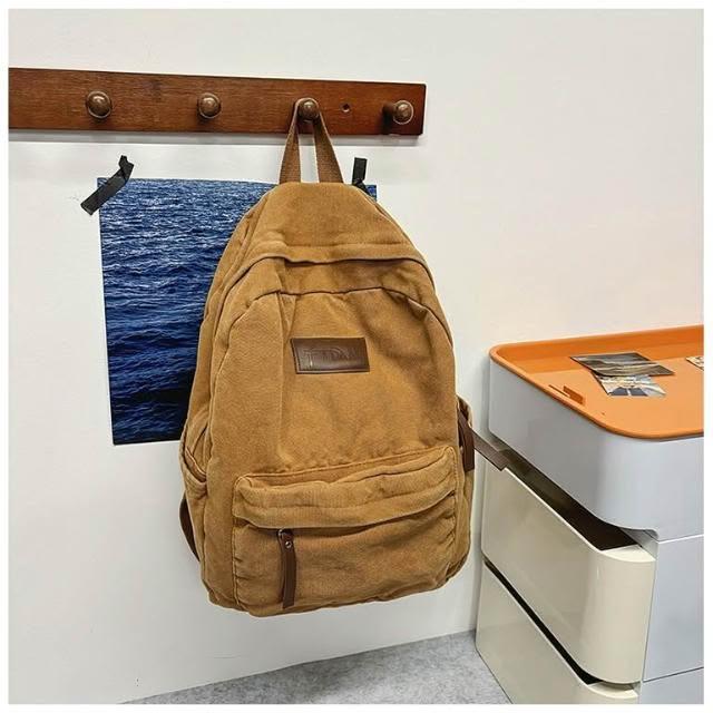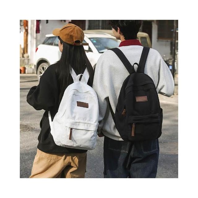 附發票帆布雙肩包女原宿簡約大容量初中大學生書包美式高中復古雙肩背包