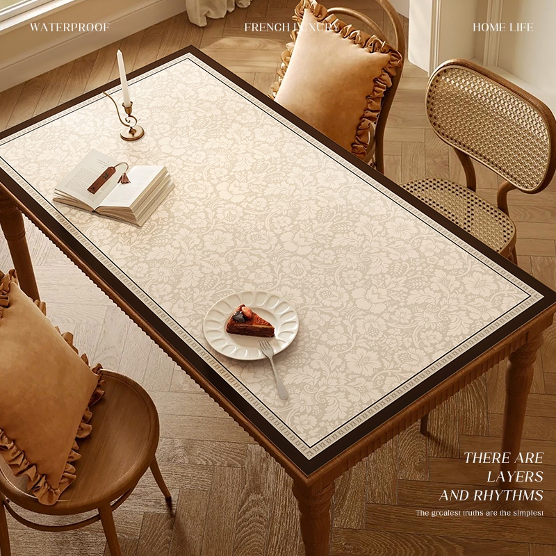 可訂製輕奢 高級感 中古風 桌布 餐桌墊 防水 防油 防燙 皮革 法式 復古 免洗 茶幾墊