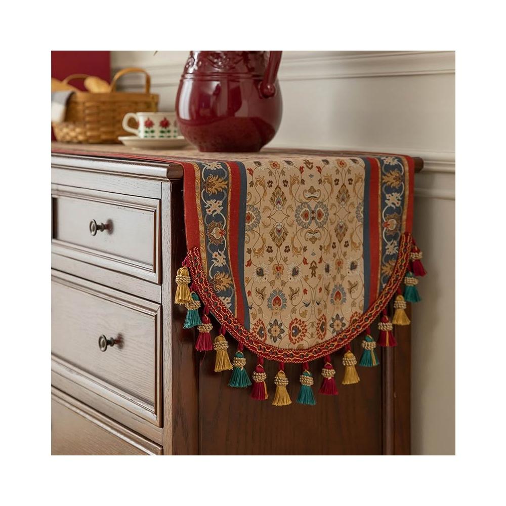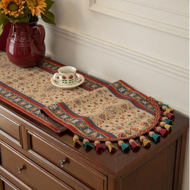 美式 復古 桌旗 餐桌佈 長條 輕奢 裝飾佈 流蘇 床旗 高級感 玄關 鬥櫃 蓋布