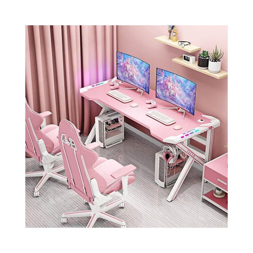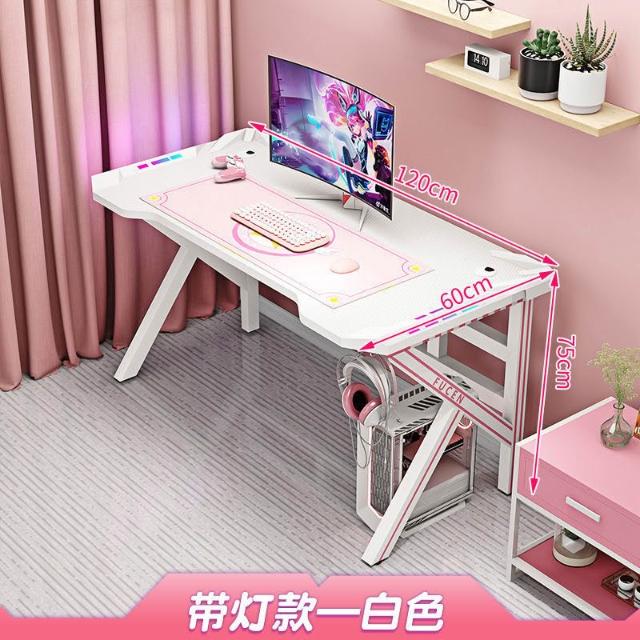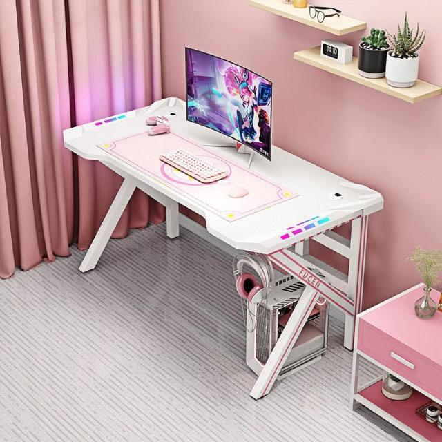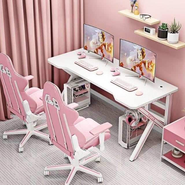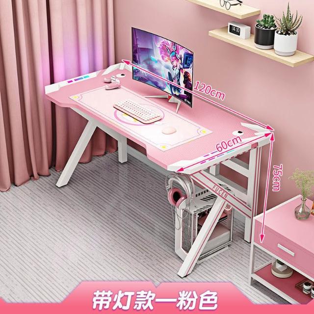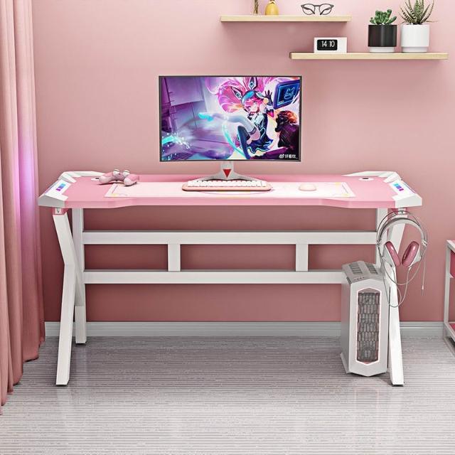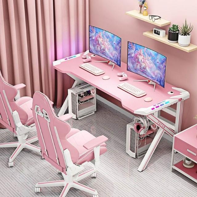 電競桌粉色臺式電腦桌家用臥室網紅直播少女遊戲桌椅套裝書桌帶燈