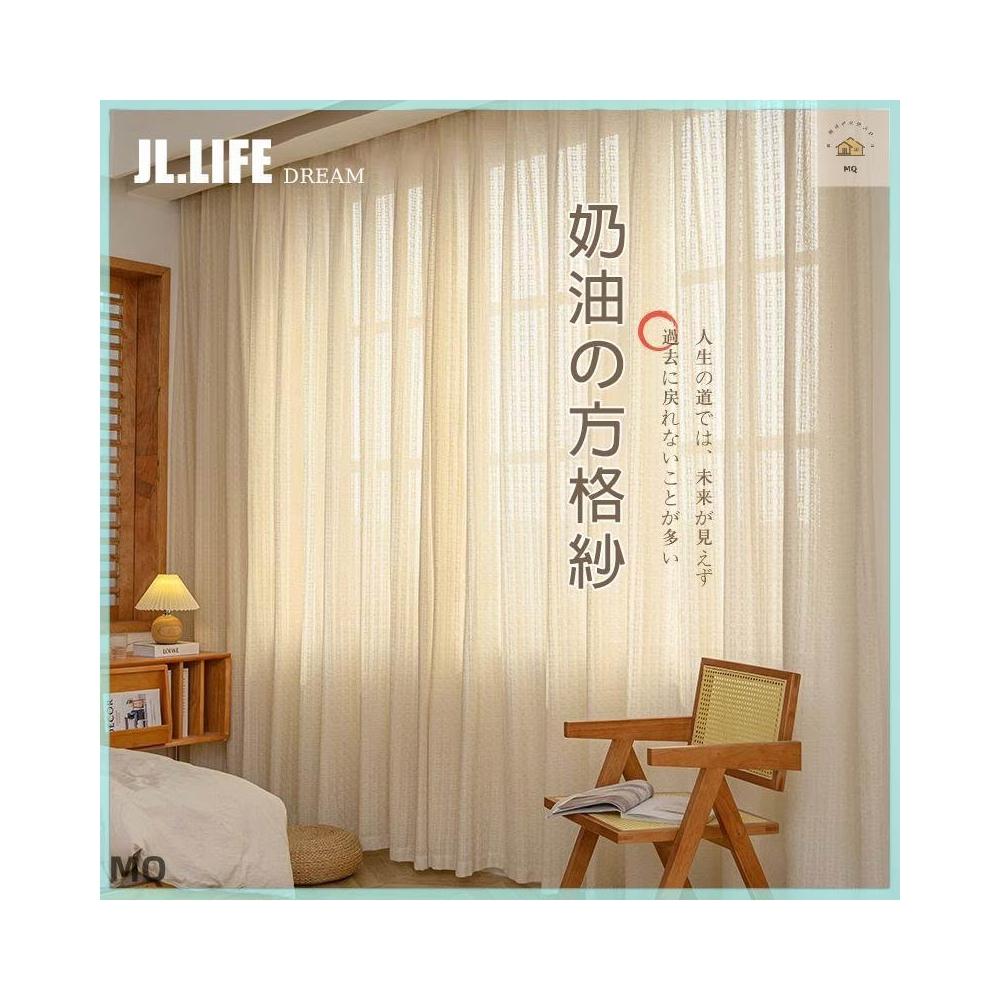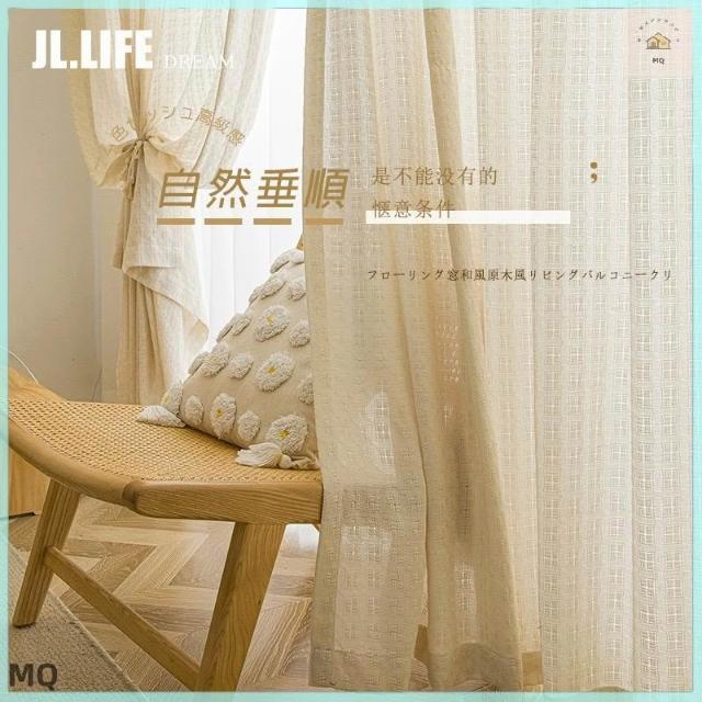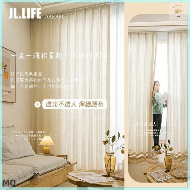 附發票奶油色日式原木風紗簾 加厚棉麻紗簾 窗簾 透光不透人窗紗紗簾 半遮光窗簾 飄窗陽臺客廳隔斷簾 半遮光落地窗簾紗 北