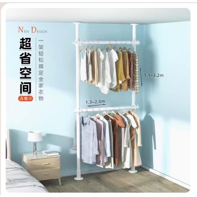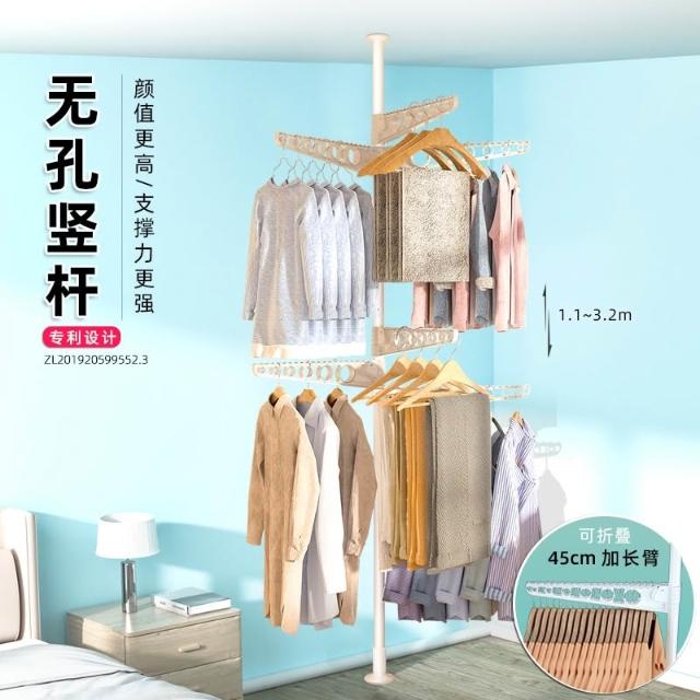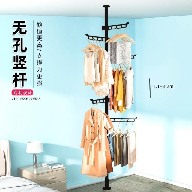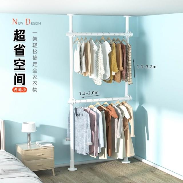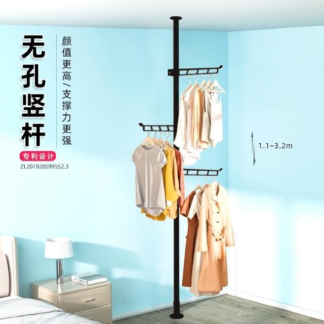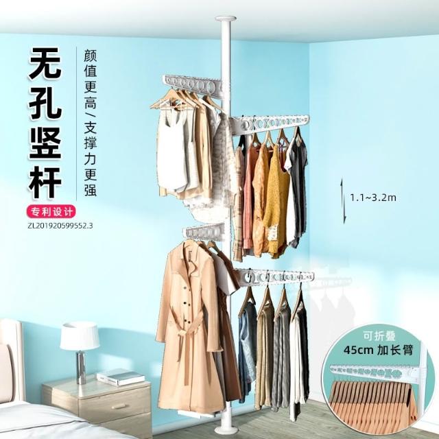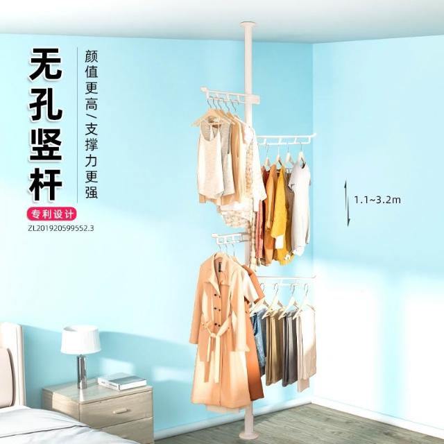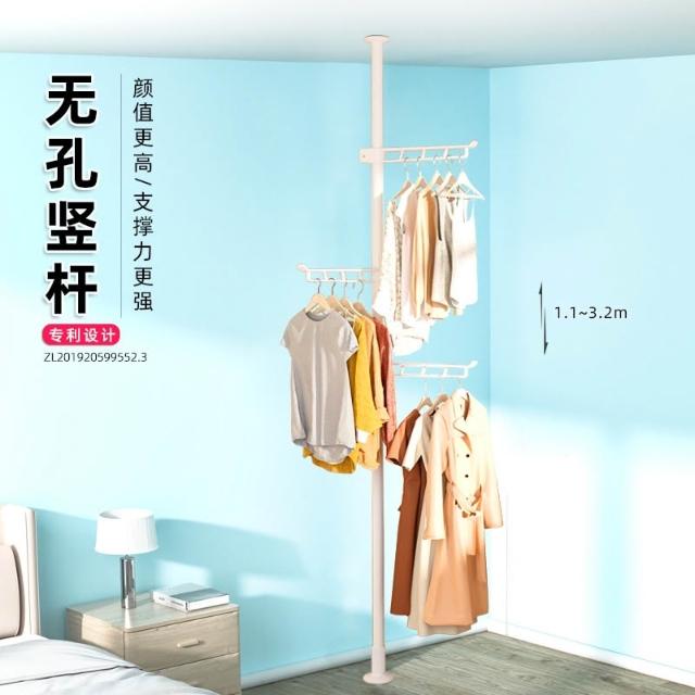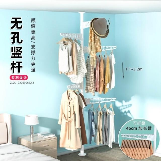 掛衣架 頂天立地掛衣架 免打孔安裝衣架桿子 晾衣架 衣服掛衣架 落地臥室夾子掛衣 頂天立地晾衣桿 免打孔伸縮桿衣架嗮