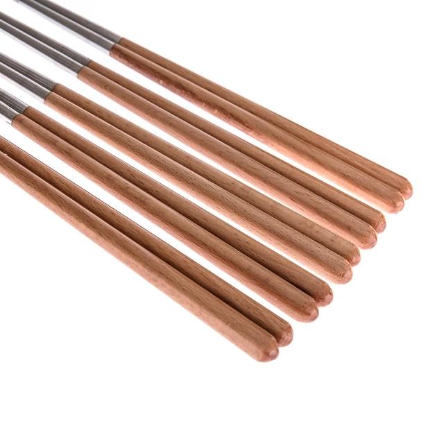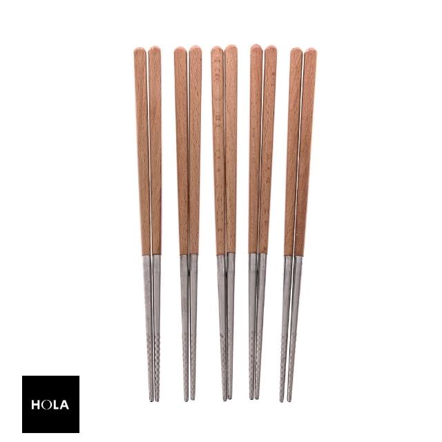 HOLA雅柏304不鏽鋼筷五入-山毛櫸
