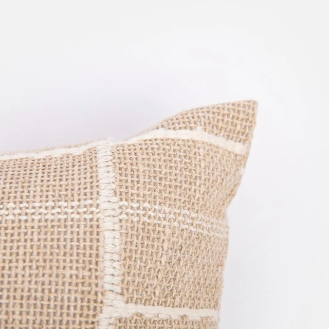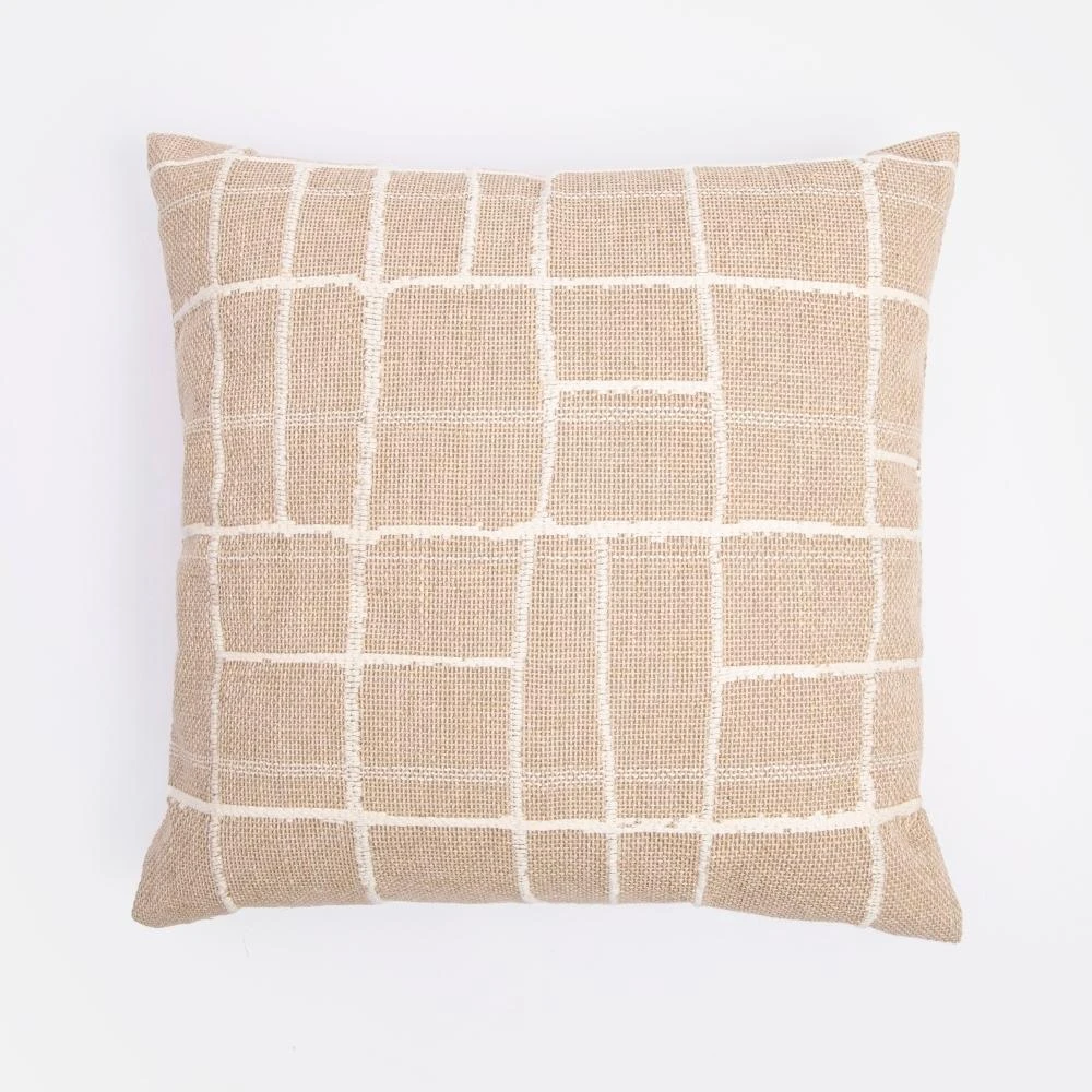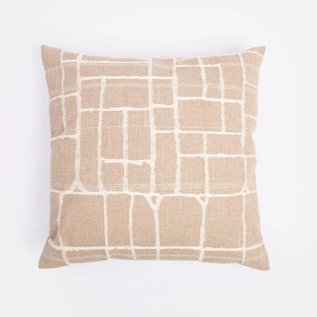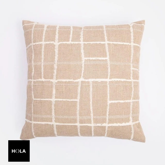 HOLA艾禮思單接縫緹花抱枕套50x50cm 杏色方格