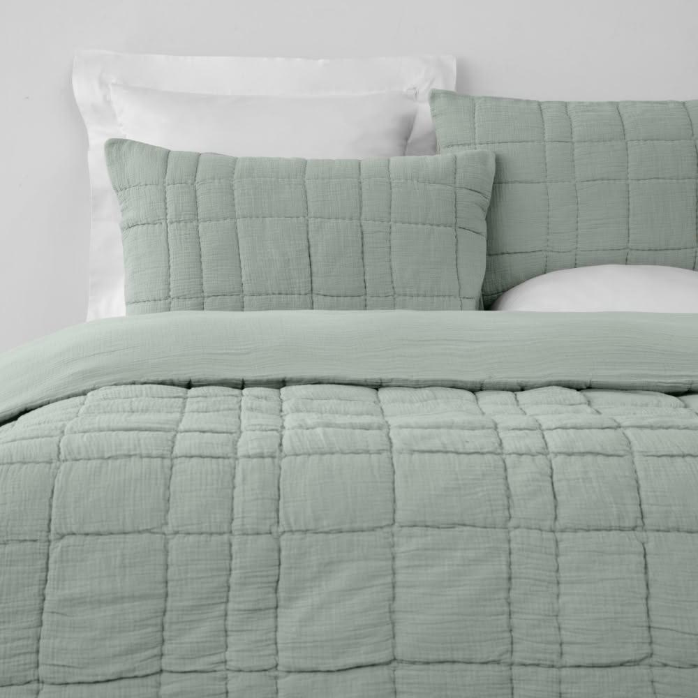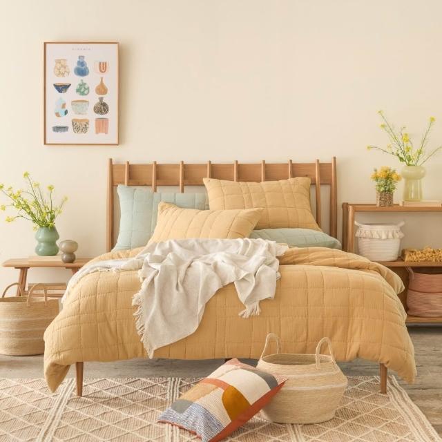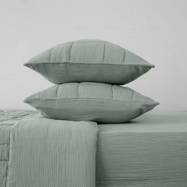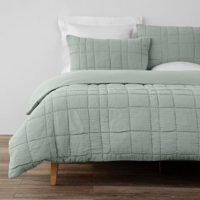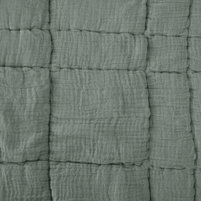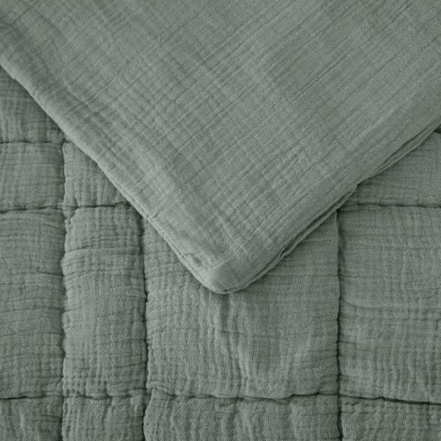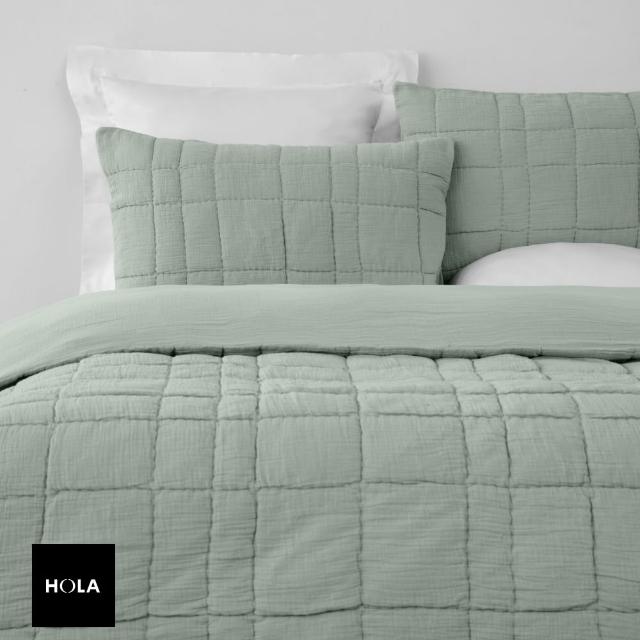 HOLA奧可利雙層皺皺紗绗縫純棉床包兩用被組雙人 格子綠