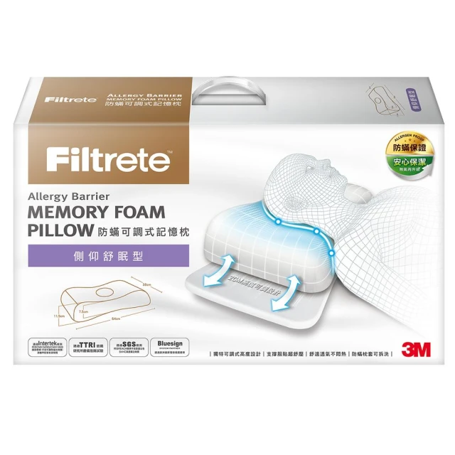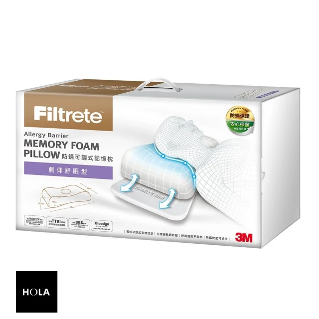HOLA3M Filtrete防螨可調式記憶枕側仰舒眠型