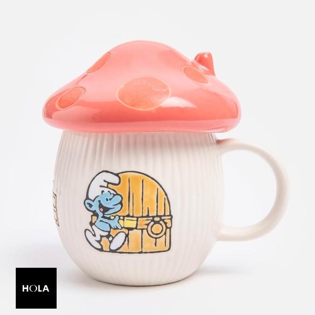 HOLA藍色小精靈蘑菇造型陶瓷馬克杯350mL 紅