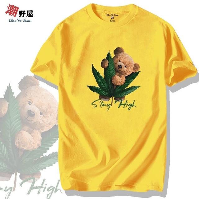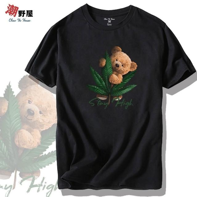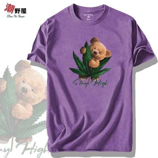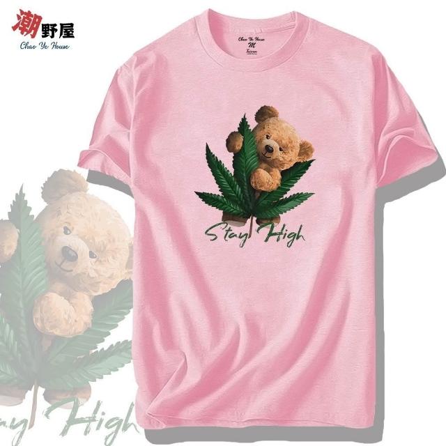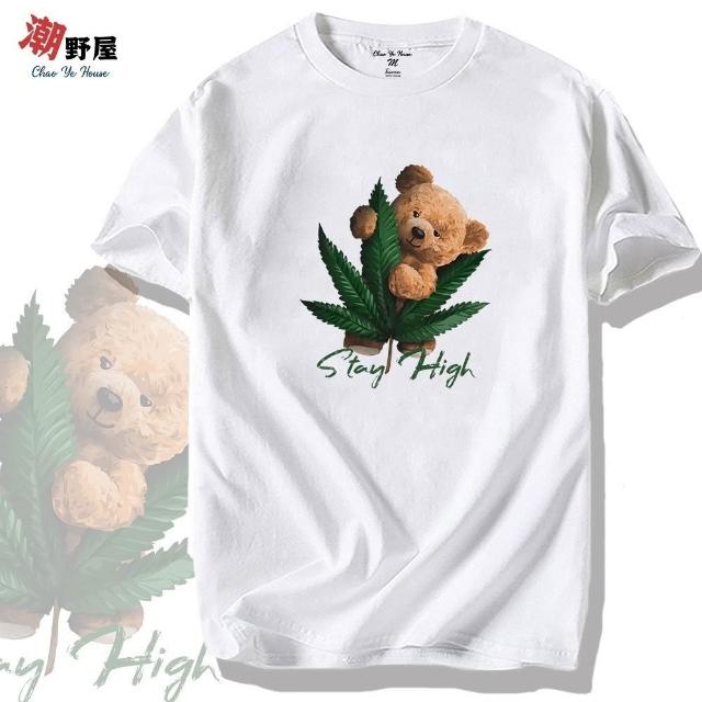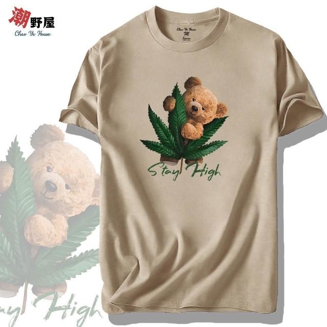 潮野屋大麻熊 大麻葉 純棉T恤 短袖上衣 美式風 休閒短T 街頭穿搭 潮流服飾 WTS-758