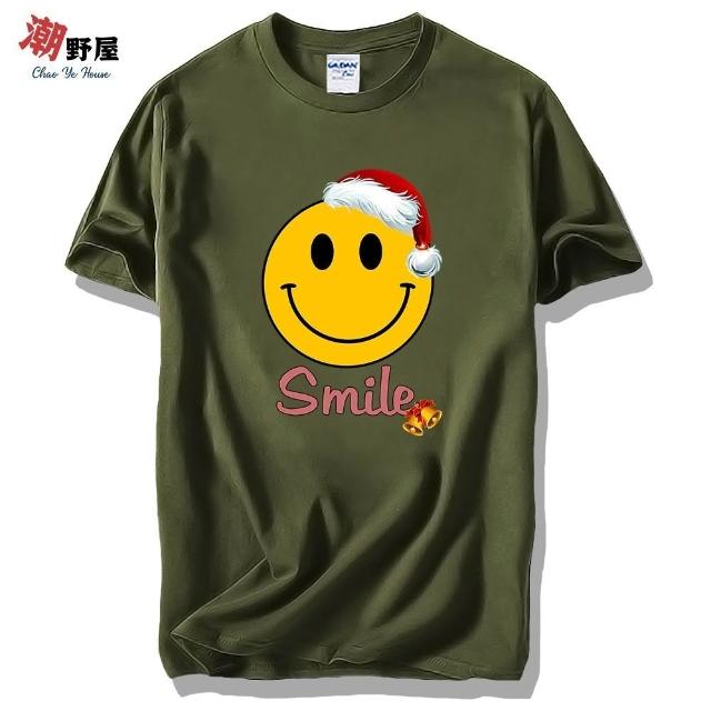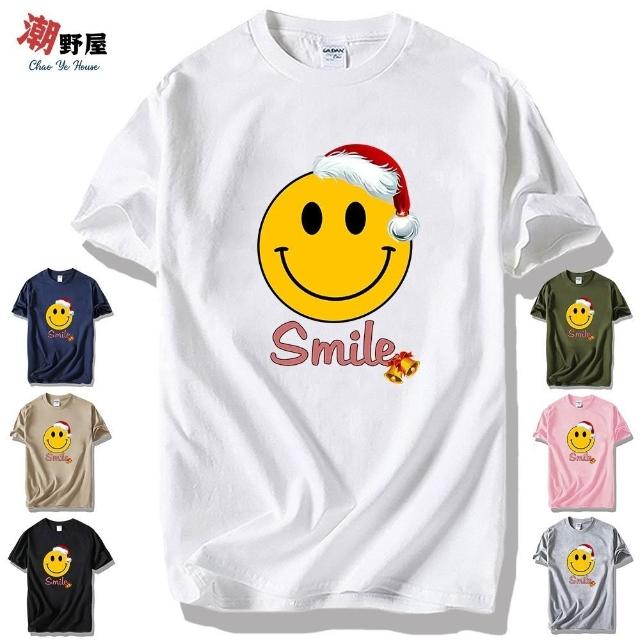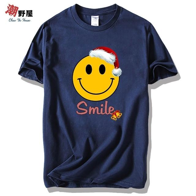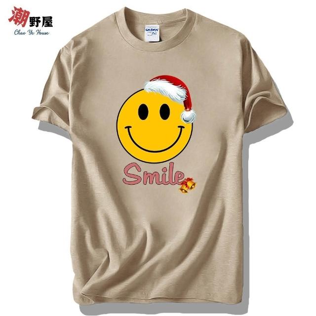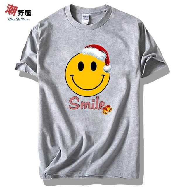潮野屋聖誕笑臉 純棉T恤 短袖上衣 美式風 休閒短T 街頭穿搭 潮流服飾 WTS-79