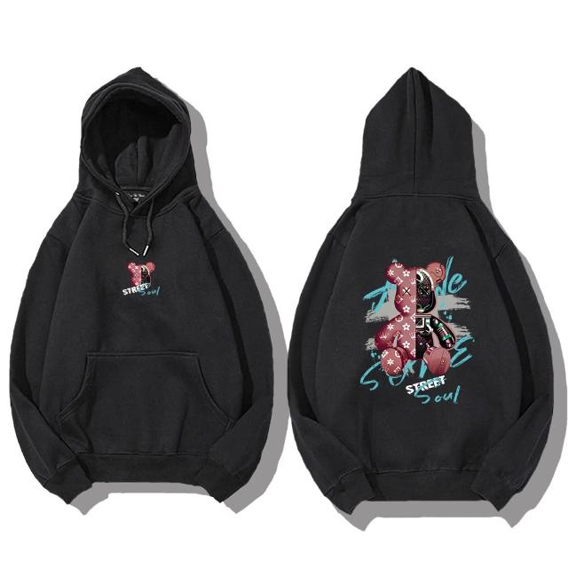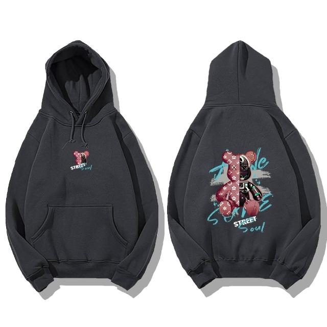 潮野屋塗鴉暴力熊 帽T 刷毛 長袖上衣 美式風 街頭穿搭 潮流服飾 WDD-675