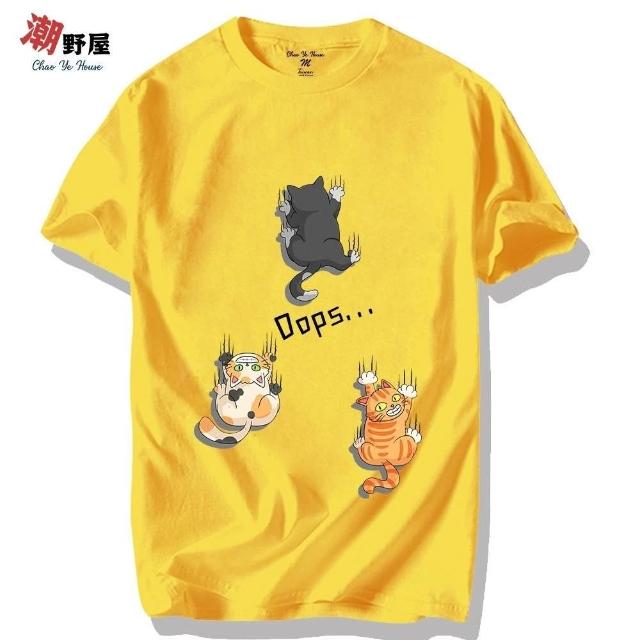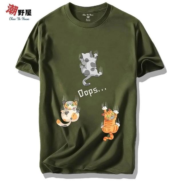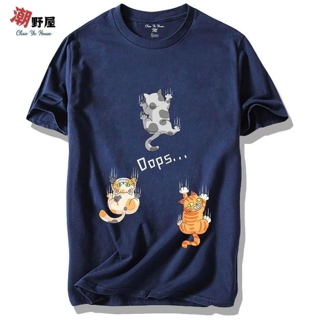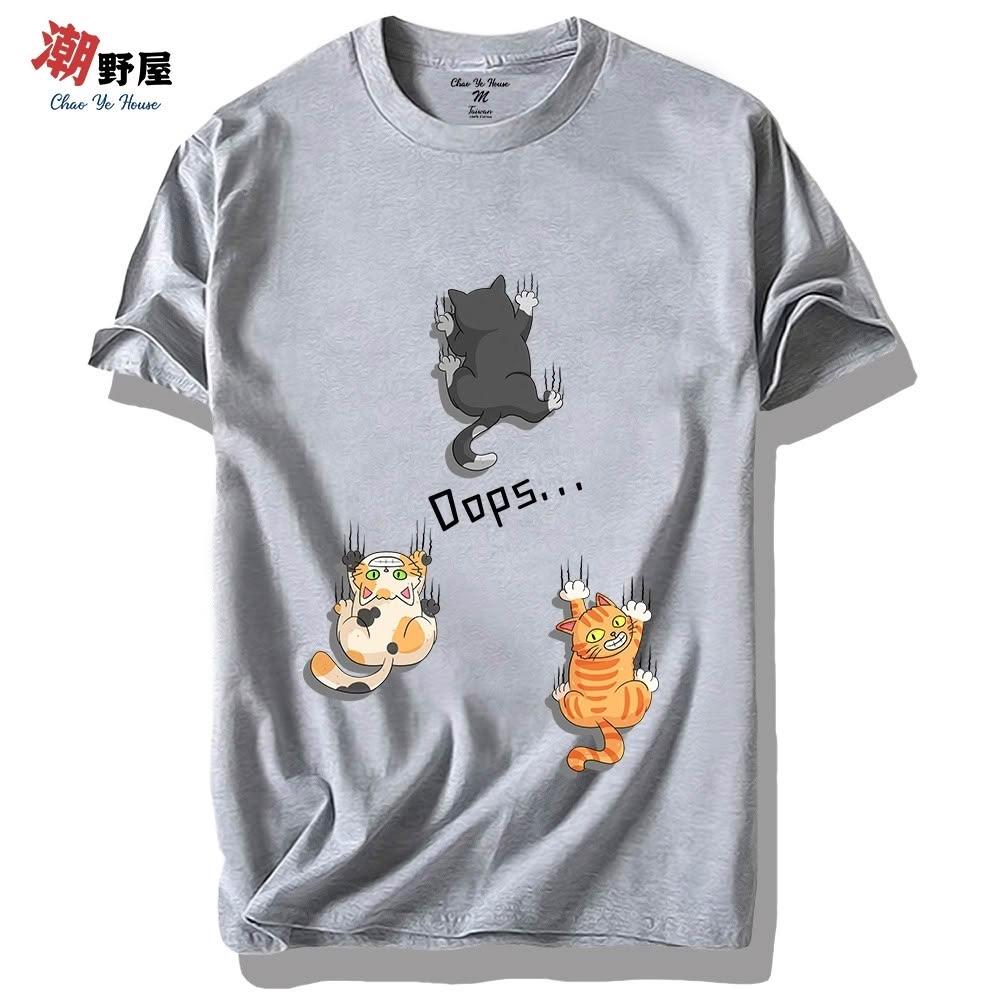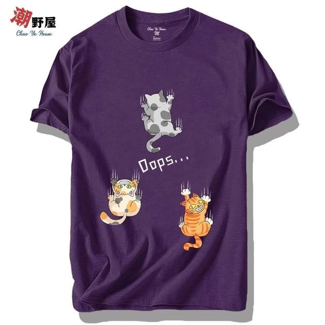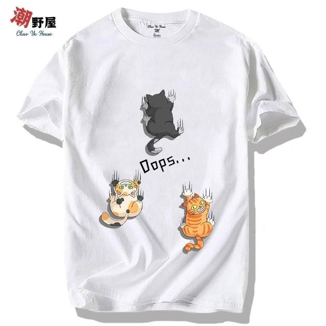 潮野屋調皮的貓 純棉T恤 短袖上衣 美式風 休閒短T 街頭穿搭 潮流服飾 WTS-3269