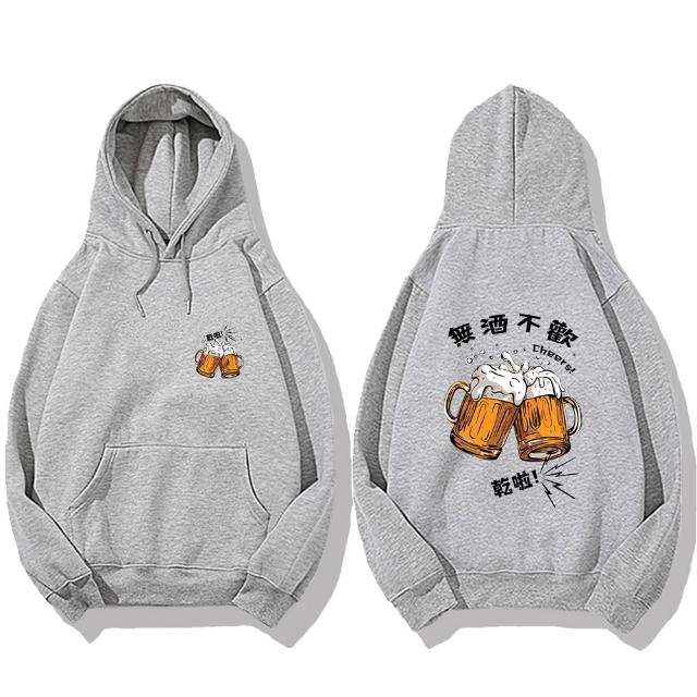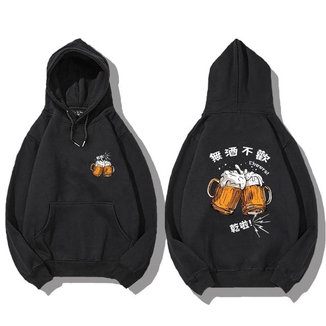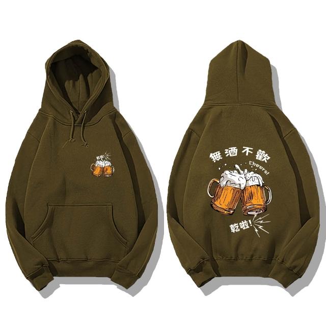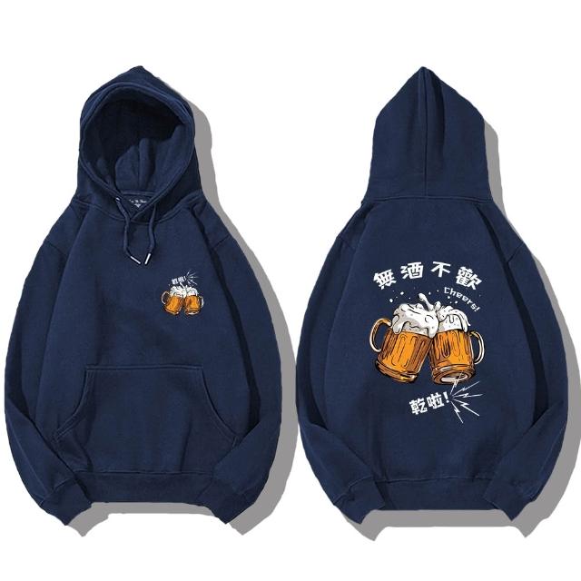 潮野屋貳號倉 無酒不歡 乾啦 啤酒 帽T 刷毛 長袖上衣 文字風 街頭穿搭 潮流服飾 WDD-3023