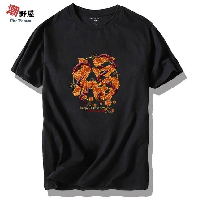潮野屋福蛇 新年 蛇年 春節 吉祥如意 純棉T恤 短袖上衣 中國風 休閒短T 街頭穿搭 潮流服飾 WTS-1090