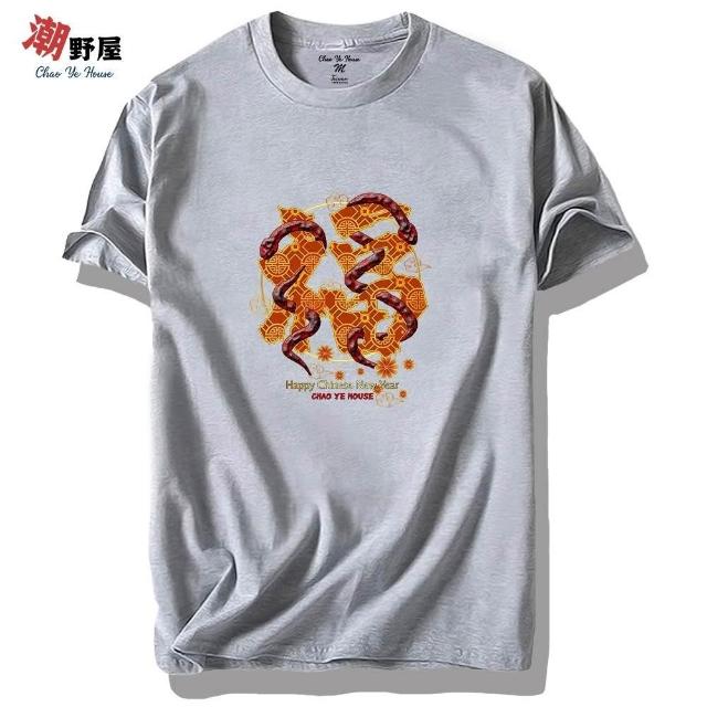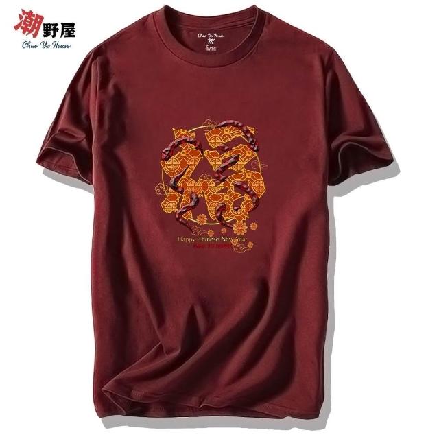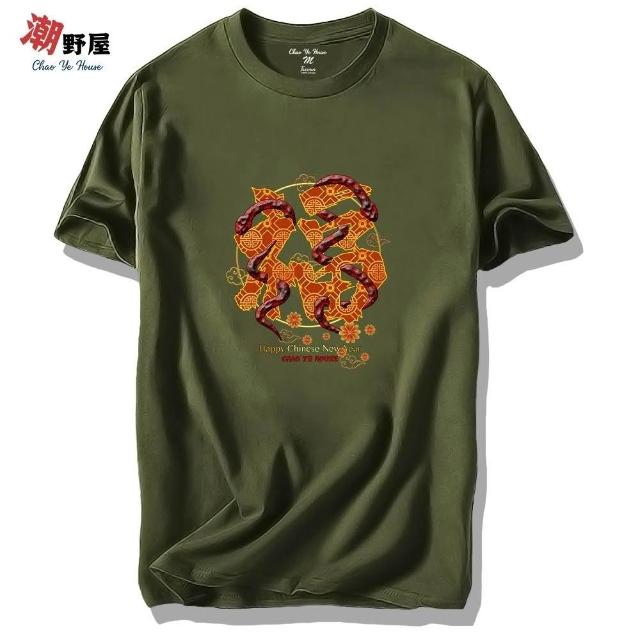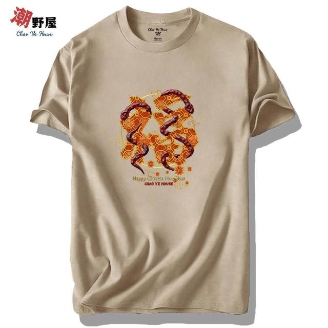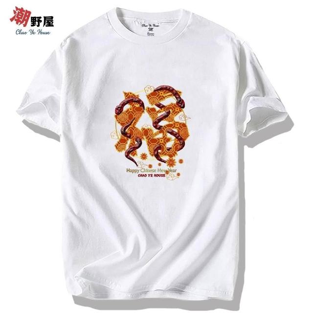 潮野屋福蛇 新年 蛇年 春節 吉祥如意 純棉T恤 短袖上衣 中國風 休閒短T 街頭穿搭 潮流服飾 WTS-1090